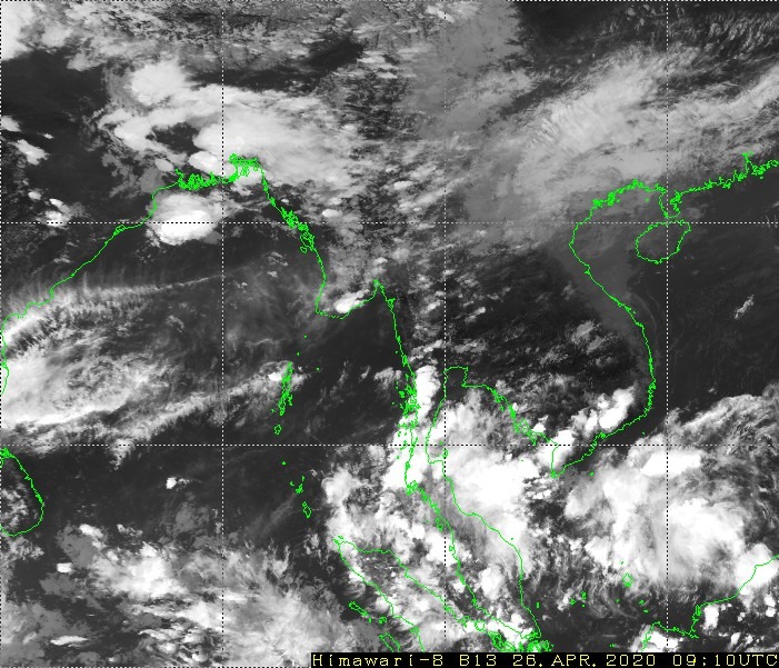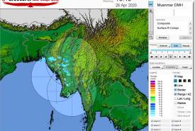 မိုးလေဝသနှင့်ဇလဗေဒညွှန်ကြားမှုဦးစီးဌာနမှ ဧပြီ ၂၆ ရက် ညနေ ၄ နာရီအချိန်နေ့စဉ် မိုးလေဝသသတင်း ထုတ်ပြန်ရာ ဘင်္ဂလားပင်လယ်အော်အ‌ခြေအနေမှာ ကပ္ပလီပင်လယ်ပြင်နှင့် ဘင်္ဂလားပင်လယ်အော်တို့တွင် တိမ်အသင့်အတင့် ဖြစ်ထွန်းနေပါသည်။