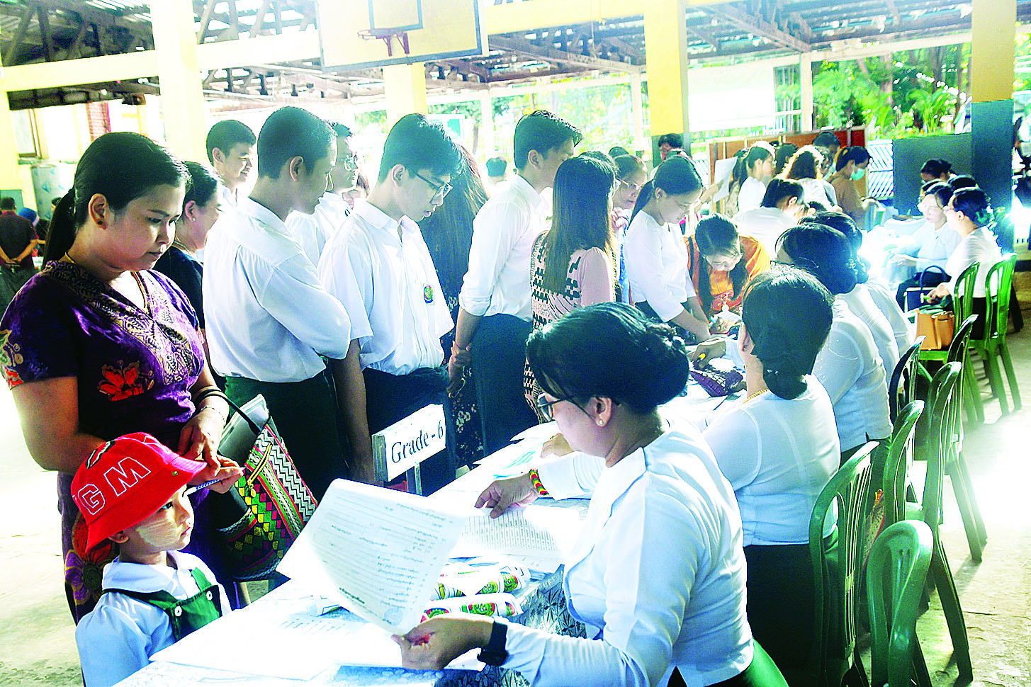 ရန်ကုန်မြို့တွင်းရှိ အခြေခံပညာကျောင်းများတွင် ယနေ့နံနက်ပိုင်းမှစတင်၍ ကျောင်းအပ်နှံရေး လုပ်ငန်းစဉ်များကို စတင်ဆောင်ရွက်လျက်ရှိရာ တာဝန်ကျ ဆရာဆရာမများက ကျောင်းသားမိဘ များနှင့် ကျောင်းသား ကျောင်းသူများကို ကျောင်းလာရောက်အပ်နှံရာတွင် အဆင်ပြေချောမွေ့စေရေး၊ ကျောင်းသားများ စာရင်းပေးသွင်းရာတွင် စည်းကမ်းတကျဖြစ်စေရေးတို့အတွက် ကြီးကြပ်ဆောင်ရွက် ပေးကြသည်။