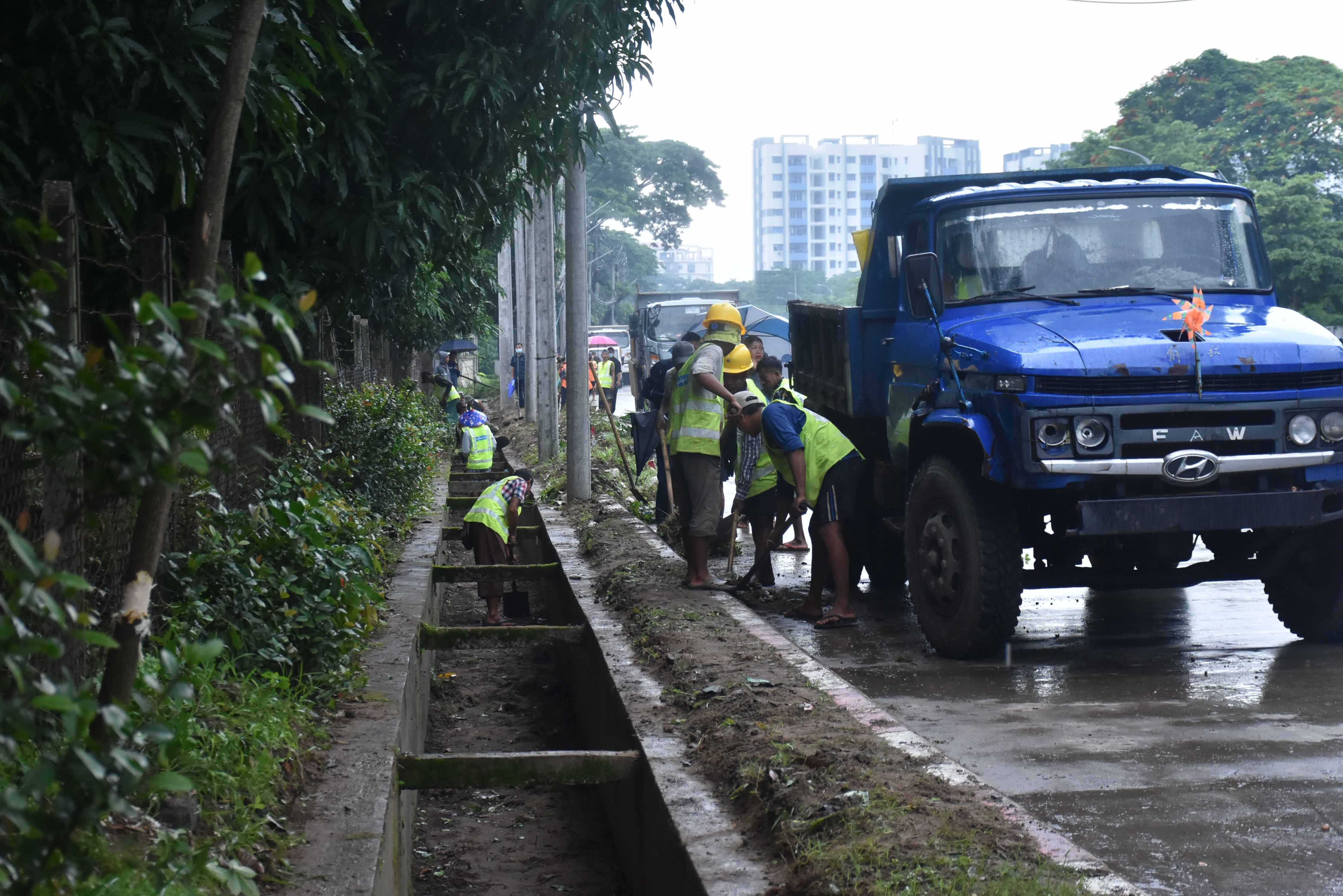 ထို့နောက် မြို့တော်ဝန်နှင့် တာဝန်ရှိသူများသည် လှိုင်မြို့နယ်၊ ၁၂ ရပ်ကွက် ပါရမီလမ်းသို့ ရောက်ရှိကာ လမ်းဝဲ/ယာ မြက်ပင်ချုံနွယ်များ ရှင်းလင်းနေမှု၊ ရေမြောင်းများအတွင်းရှိ အမှိုက်နှင့် နုန်းများ ဆယ်ယူရှင်းလင်းနေမှု၊ အုတ်မိုးကိုင်းများနှင့် လျှပ်စစ်ဓာတ်အားလိုင်းနှင့် မလွတ်ကင်းသည့် အကိုင်းအခက်များ ခုတ်ထွင်ရှင်းလင်းနေမှုတို့ကို ကြည့်ရှုစစ်ဆေးပြီး သမိုင်းကောလိပ်လမ်းထိပ်အနီး စင်္ကြံမရှိသည့်နေရာတွင် မြောင်းဖုံးခင်းကျင်း၍ လူသွားစင်္ကြံခင်းကျင်းရန်၊ မြေပိုနှင့် ကမူများအား မြေညှိရှင်းလင်းရန်နှင့် စက်ဘီးလမ်း ပြုလုပ်ပေးရန် မှာကြားသည်။