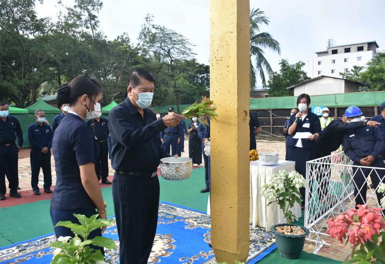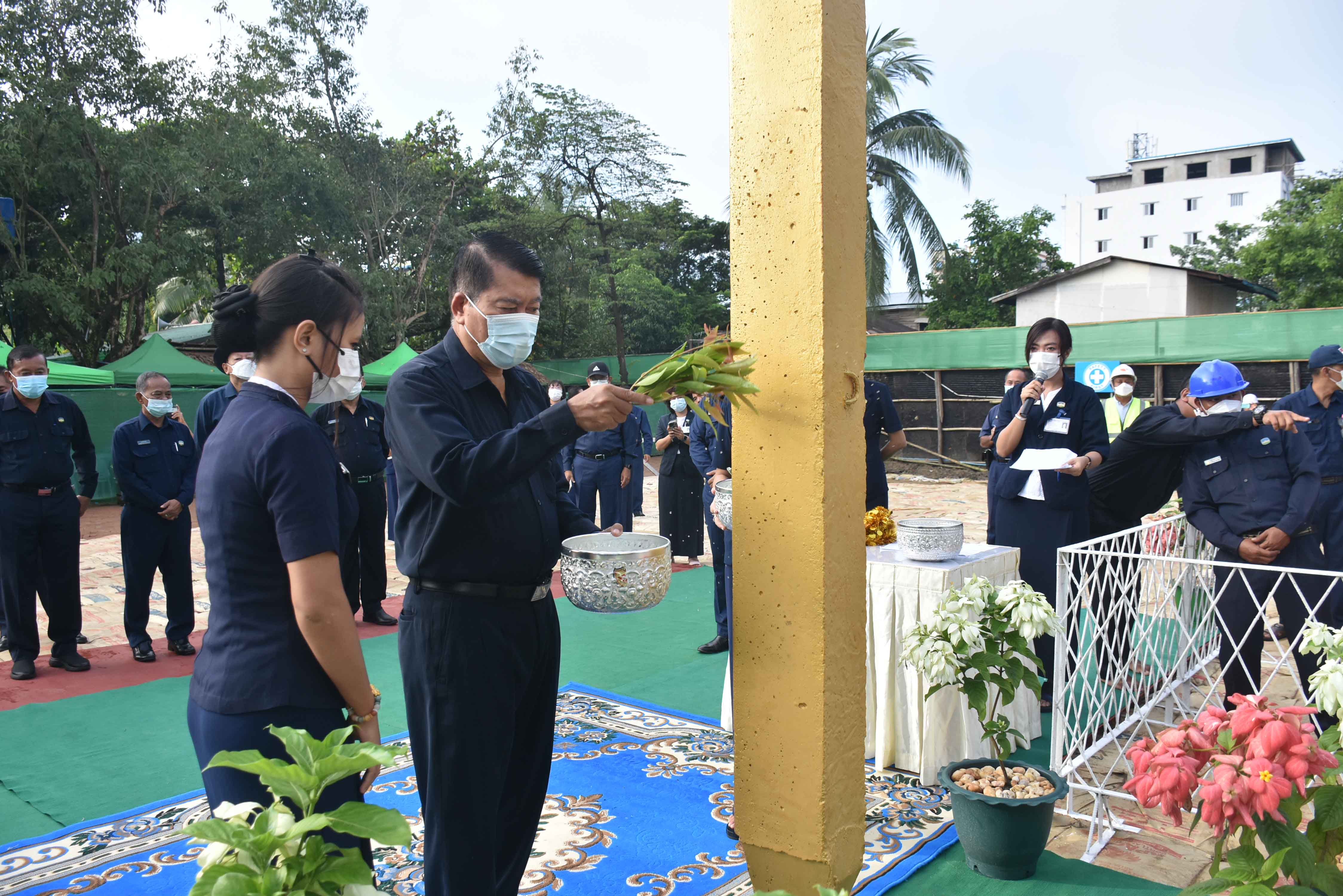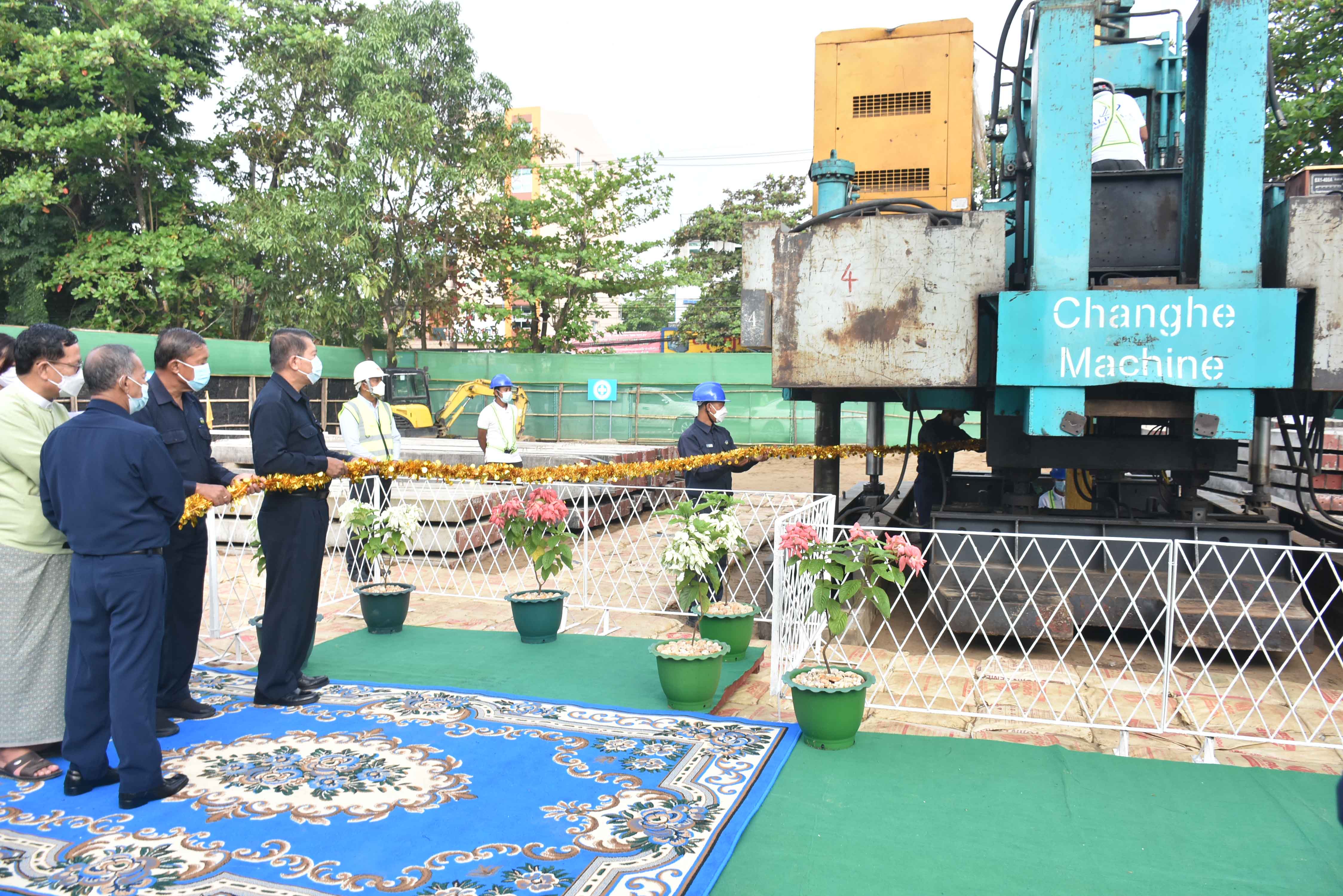 ထို့နောက် မြို့တော်ဝန်နှင့်အဖွဲ့သည် သာကေတမြို့နယ်၊ အမှတ် (၆) ရပ်ကွက်၊ မြင်တော်သာလမ်းဘေးတွင် ရေအရည်အသွေးစစ်ဆေးရေး ပင်မဓာတ်ခွဲခန်းအဆောက်အဦ ဆောက်လုပ်ရန်အတွက် မင်္ဂလာ Pile ရိုက်ခြင်းအခမ်းအနားသို့ တက်ရောက်၍ မြို့တော်ဝန်၊ ဒုတိယမြို့တော်ဝန်၊ အတွင်းရေးမှူး၊ ကော်မတီဝင်များနှင့် ဗိုလ်တထောင်ခရိုင် စီမံအုပ်ချုပ်ရေးအဖွဲ့ ဥက္ကဋ္ဌတို့က မင်္ဂလာအမွှေးနံ့သာရည် ပက်ဖျန်းပေးပြီး မင်္ဂလာအချိန်ကျရောက်သည်နှင့် မင်္ဂလာ Pile အား ရိုက်သွင်းကာ ရွှေမိုး၊ ငွေမိုးရွာသွန်းပေးသည်။