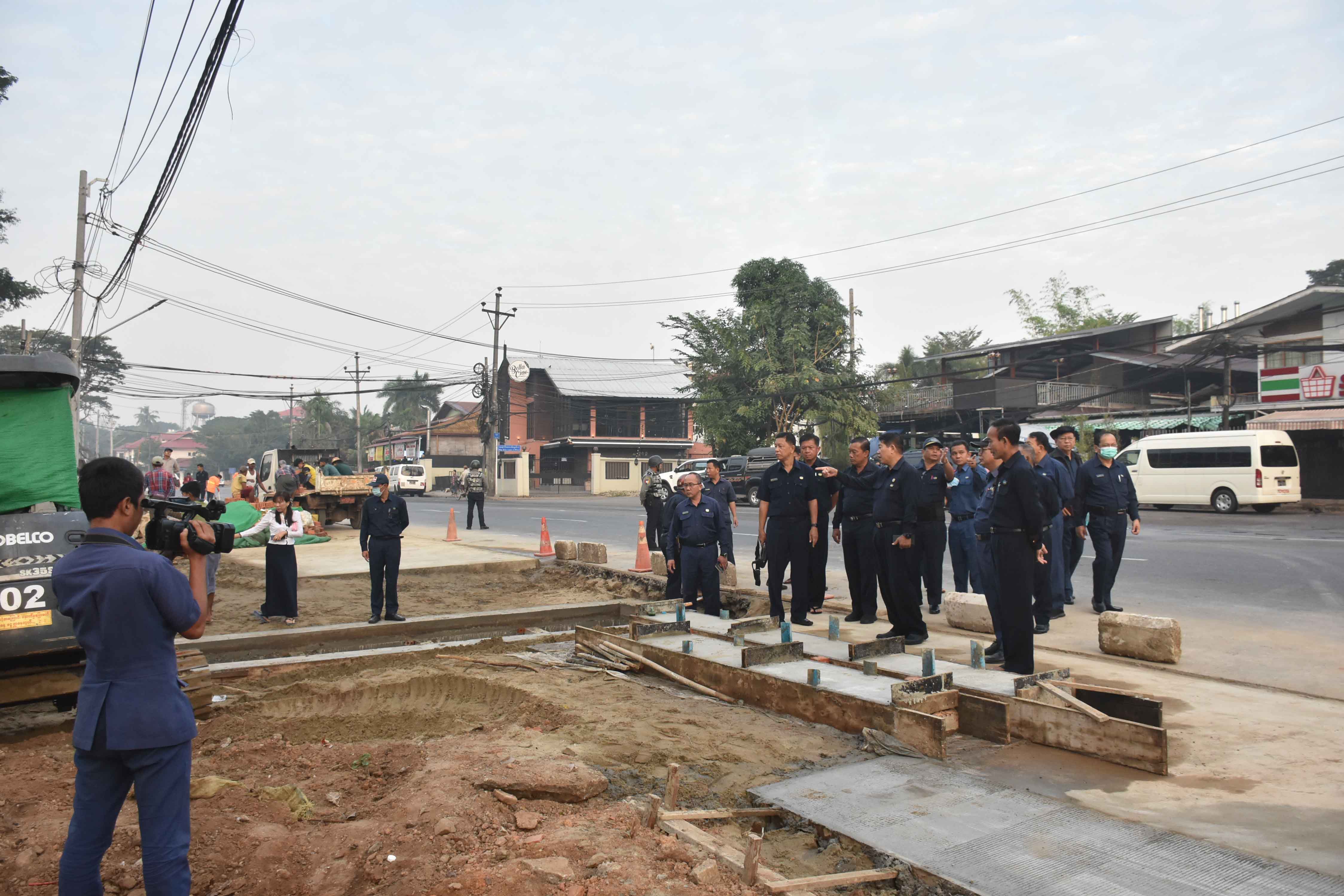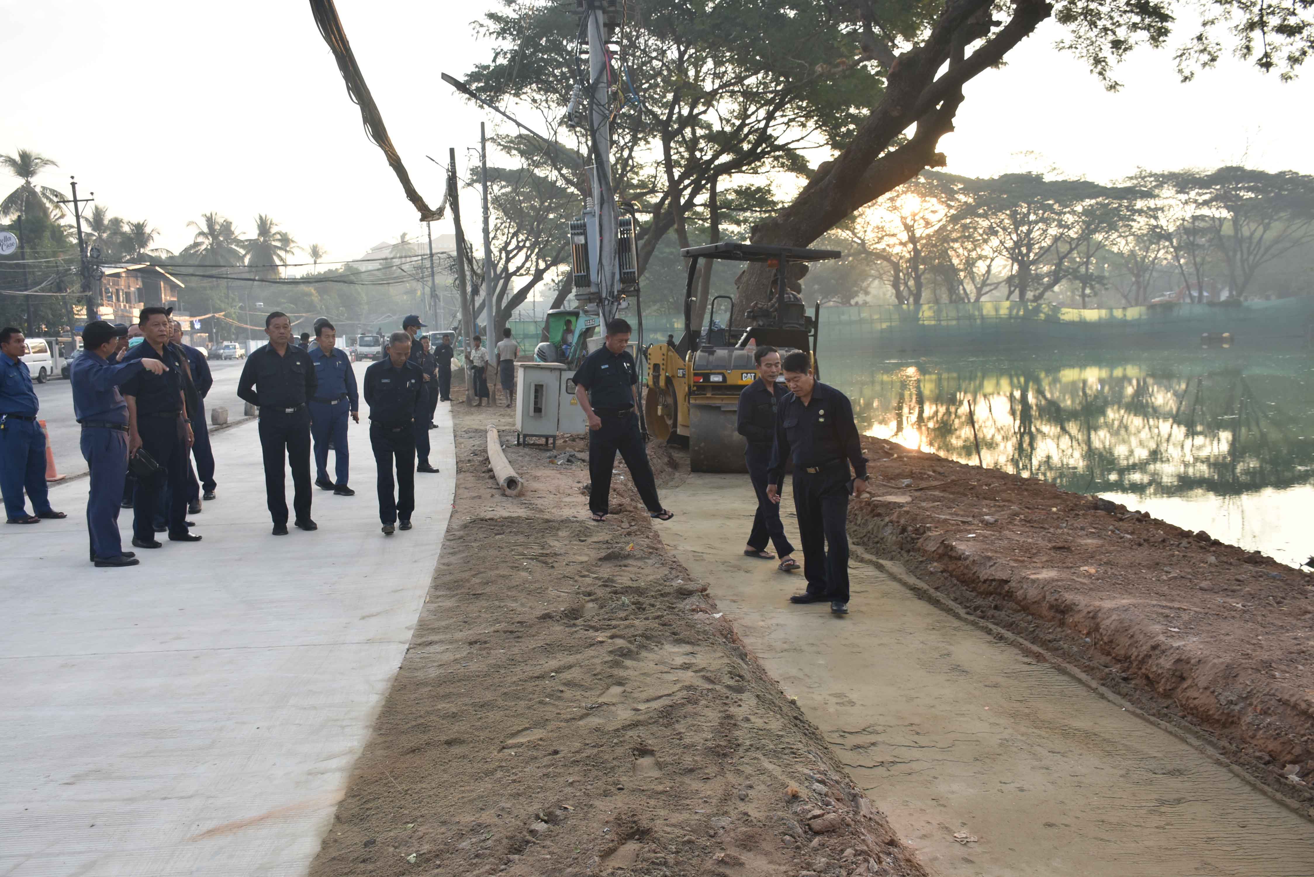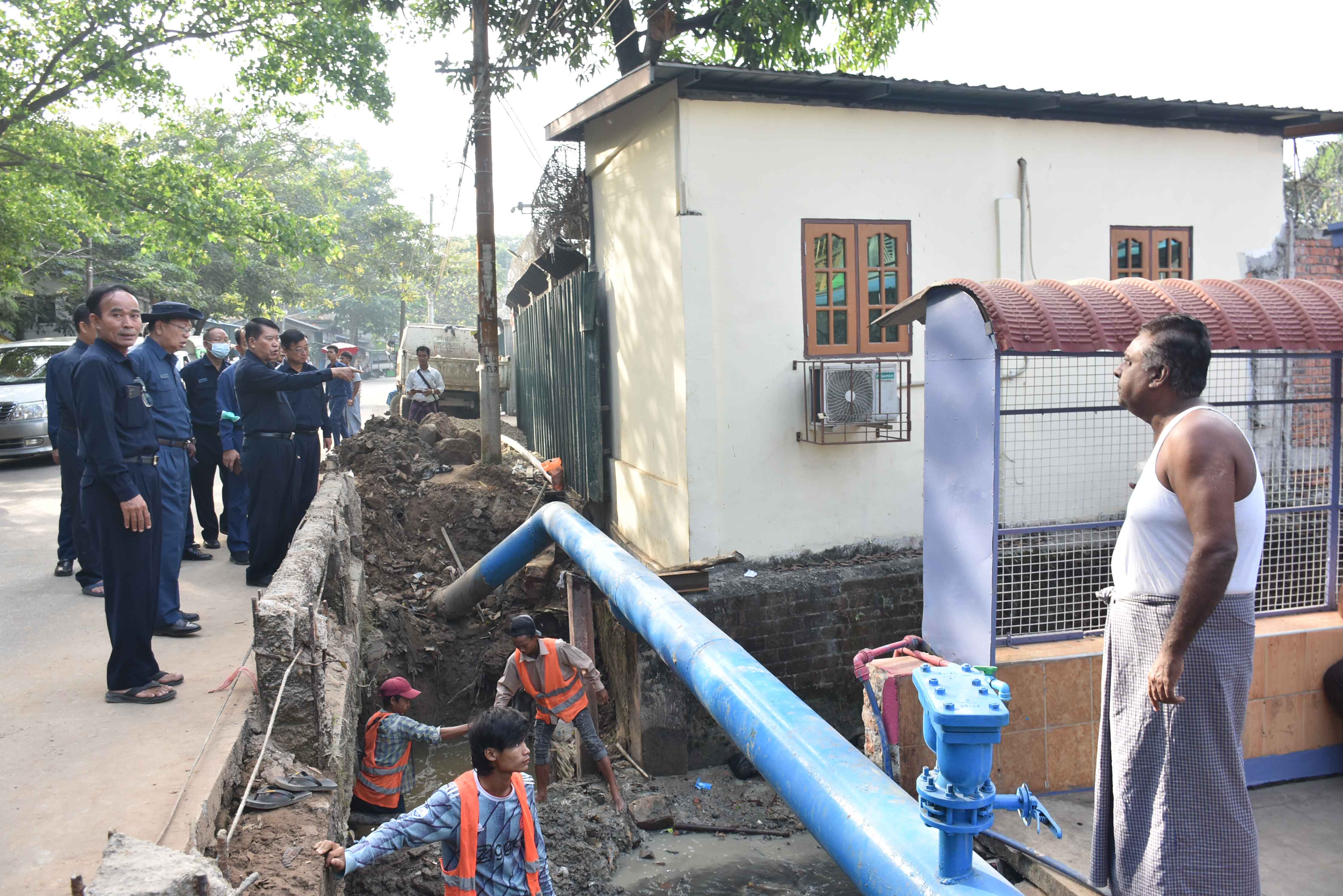 ထိုမှတစ်ဆင့် မြို့တော်ဝန်နှင့်အဖွဲ့သည် အင်းစိန်မြို့နယ်နှင့် မရမ်းကုန်းမြို့နယ်အကြား တော်ဝင်လမ်းနှင့် မင်းဓမ္မလမ်းဆုံသို့ သွားရောက်၍ တော်ဝင်လမ်းဖြတ်၊ အောင်သိဒ္ဓိချောင်းကူး တံတားတည်ဆောက်နေမှု၊ မရမ်းကုန်းမြို့နယ်ဘက်အခြမ်း ပြည်လမ်းမှ မင်းဓမ္မလမ်းဆုံထိ အုတ်စီရေမြောင်း ပြုလုပ်နေမှု၊ တော်ဝင်လမ်းမှ အောင်သိဒ္ဓိလမ်းအထိ အောင်သိဒ္ဓိချောင်း ချောင်းမြေထိန်းနံရံ တည်ဆောက်နေမှုတို့ကို ကြည့်ရှုစစ်ဆေးပြီး ချောင်းမြေထိန်းနံရံနှင့် မင်းဓမ္မလမ်းအကြား မြေညှိ၍ မြေယာရှုခင်းဆောင်ရွက်ရန် မှာကြားသည်။