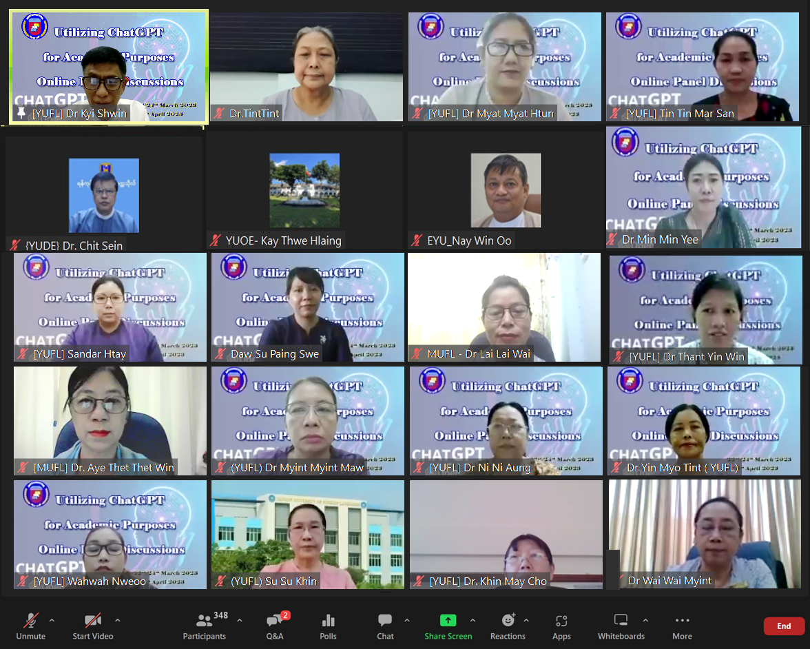 AI နည်းပညာသည် ၂၀၂၃ ခုနှစ်တွင် နယ်ပယ်အသီးသီးကို ပိုမိုထိုးဖောက် ဝင်ရောက်လာသောကြောင့် အဆင့်မြင့်ပညာကဏ္ဍရပ်များတွင် ChatGPT (AI) ကို အကျိုးရှိထိရောက်စွာ အသုံးပြုနိုင်ရန် ရည်ရွယ်ချက်ဖြင့် ရန်ကုန်နိုင်ငံခြားဘာသာ တက္ကသိုလ်နှင့် မန္တလေးနိုင်ငံခြားဘာသာ တက္ကသိုလ်တို့ ပူးပေါင်း၍ Utilizing ChatGPT For Academic Purposes Online ဆွေးနွေးပွဲကို မတ် ၂၄ ရက်တွင် စတင်ကျင်းပသည်။