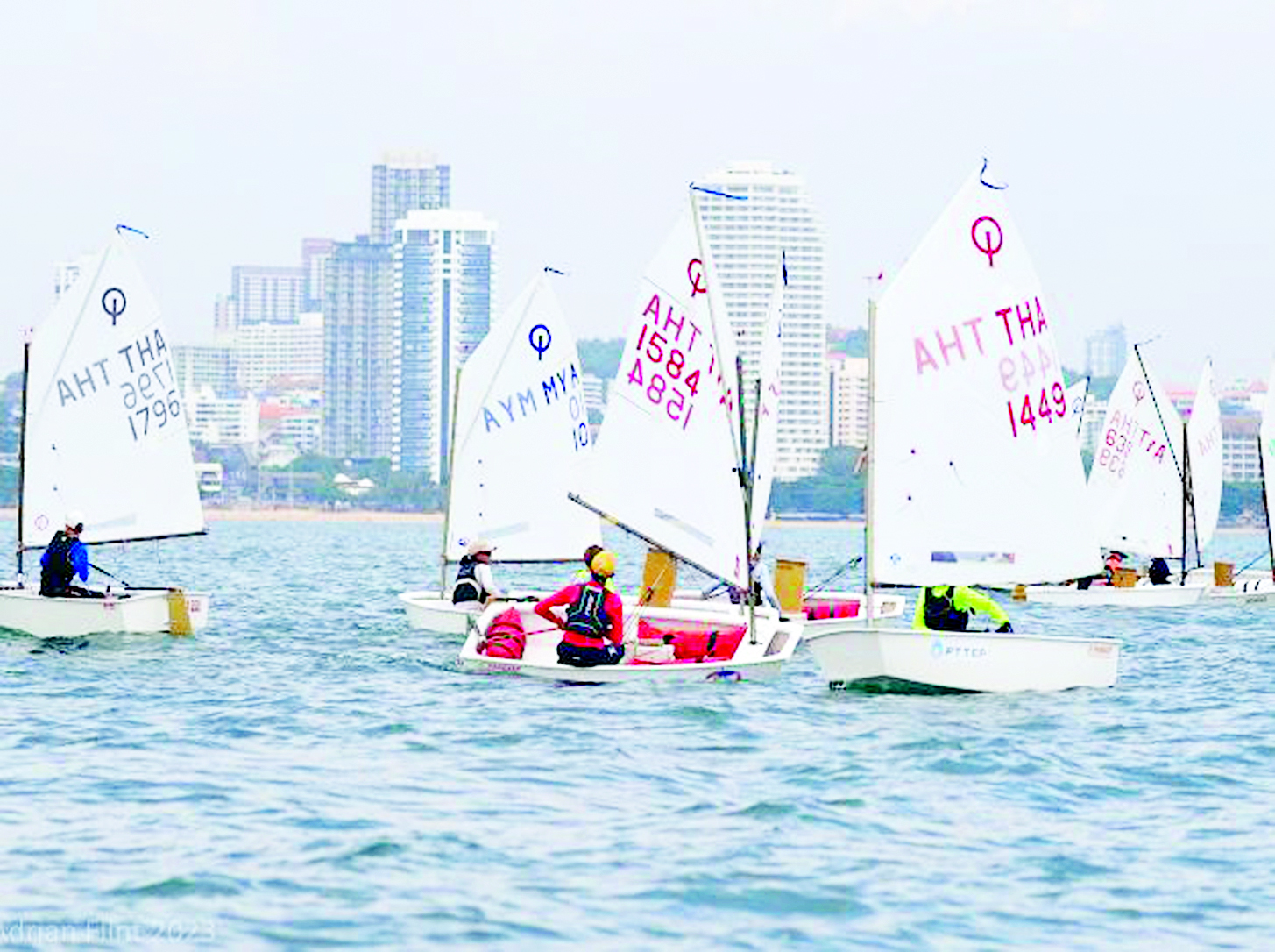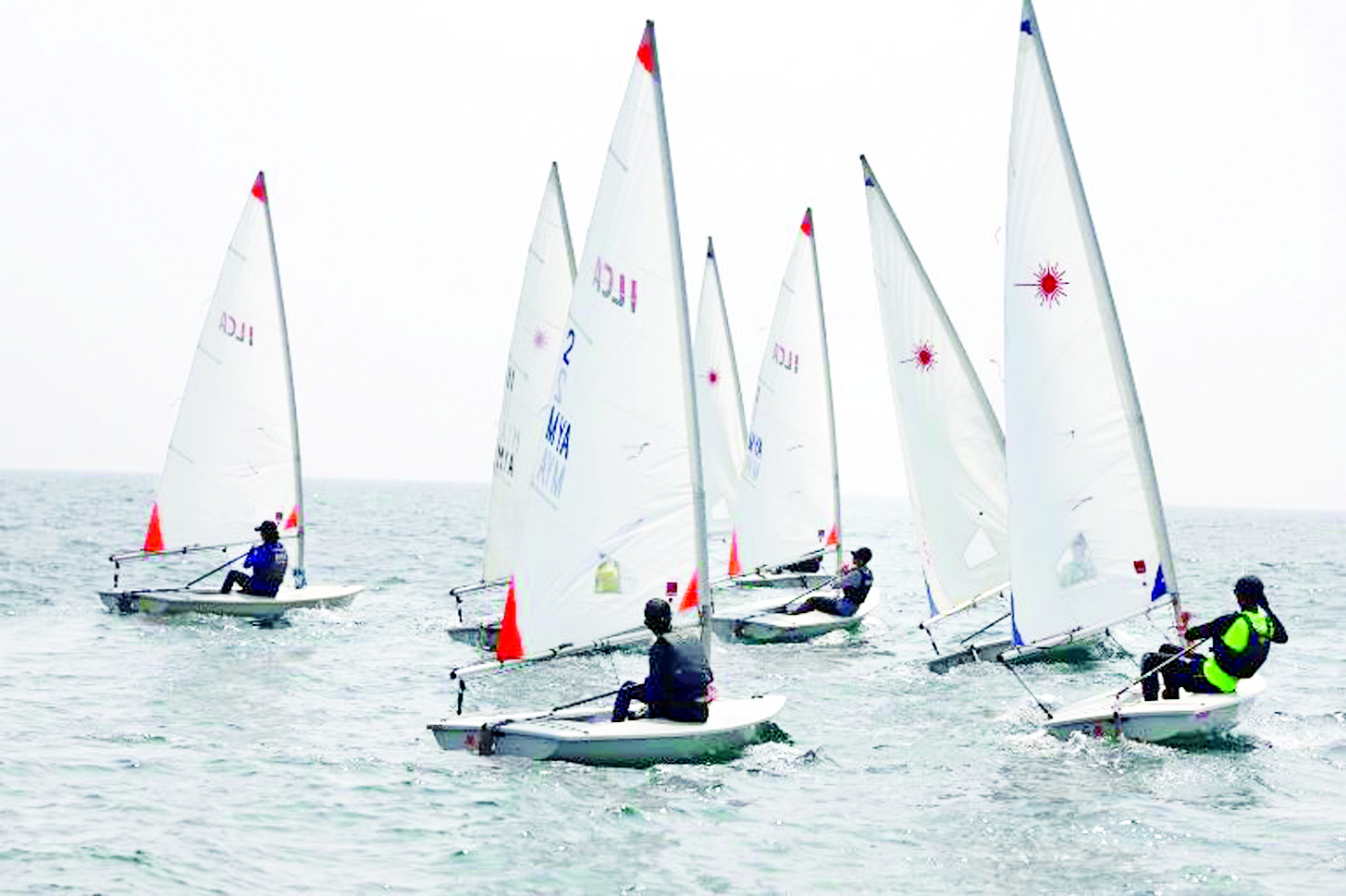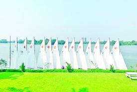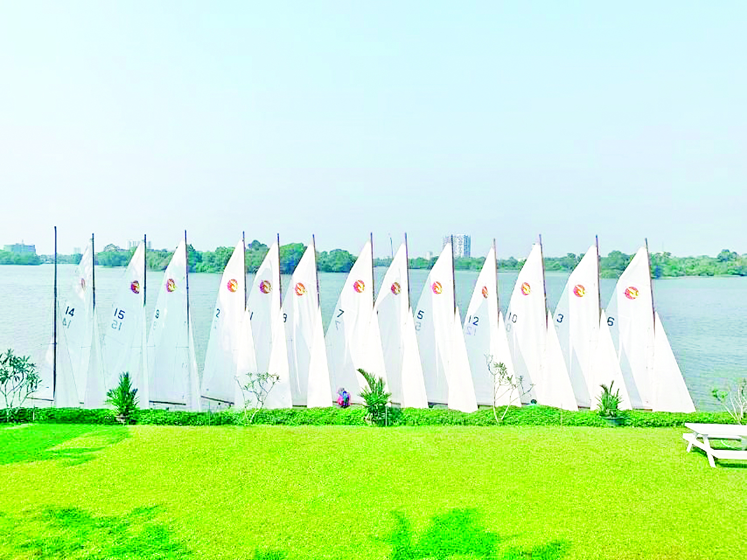 ရန်ကုန်မြို့၏ အထင်ကရ အင်းယားကန် ရေပြင်ထက်တွင် ရွက်စုံကို လေနှင်ရာအလိုက်သင့် ဟန်ချက်ညီညီ ထိန်းကျောင်းရင်း ဦးတည်ရာ ပန်းတိုင်ဆီသို့ ဖြည်းဖြည်းငြိမ့်ငြိမ့်လေး သွားလာနေသည့် အဖြူရောင် ရွက်လှေငယ်များ။