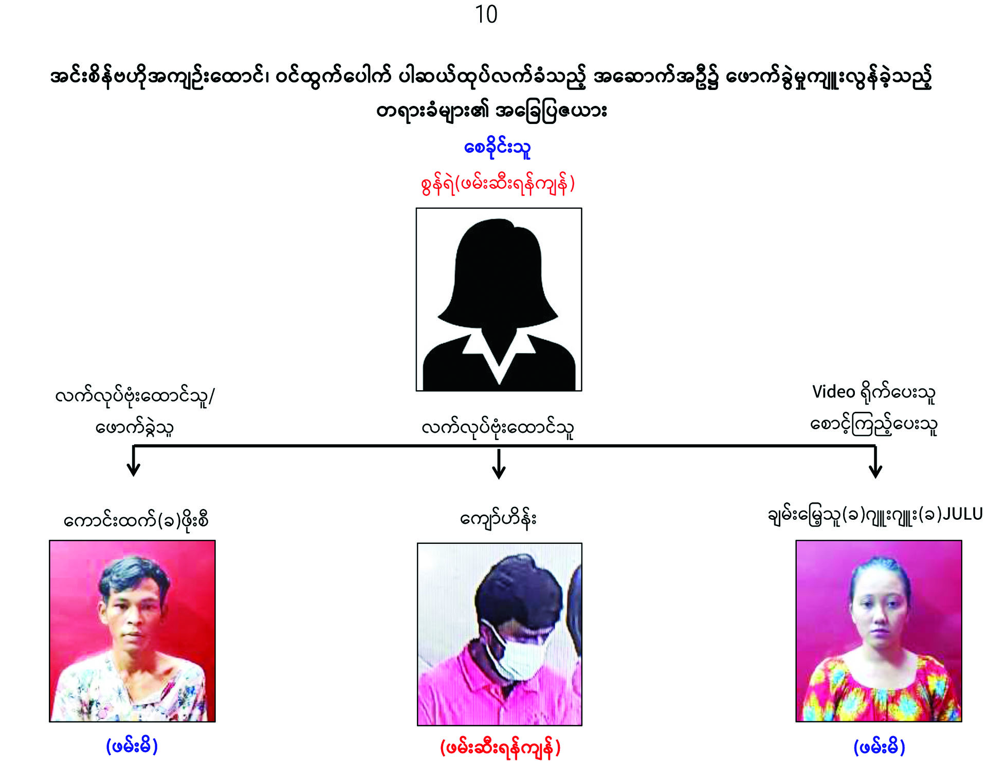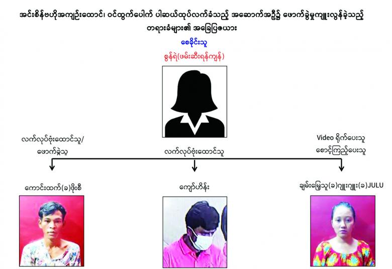 ၎င်းနောက် ချမ်းမြေ့သူ(ခ) ဂျူးဂျူး(ခ) JULUသည် ၎င်းရိုက်ကူးထားသည့် Video မှတ်တမ်းအား “စွန်ရဲ” ဆိုသူထံ signal မှ ပေးပို့ခဲ့ကြောင်း ဖော်ထုတ်သိရှိရသည်။