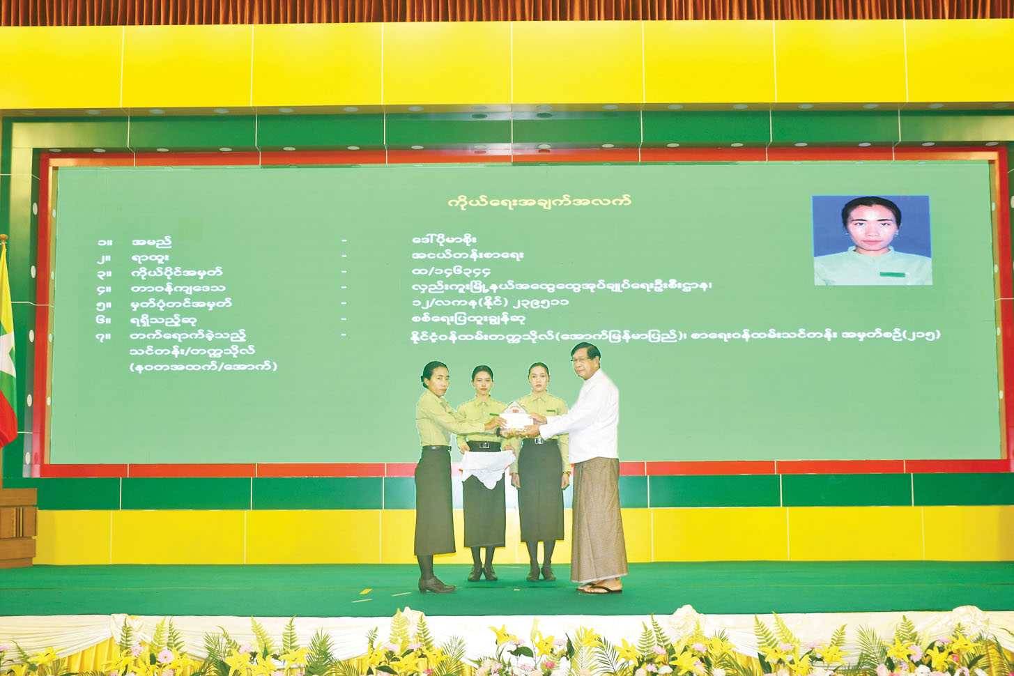 ထို့နောက် နိုင်ငံ့ဝန်ထမ်း တက္ကသိုလ်၊ အုပ်ချုပ်ရေးပညာ ဖွံ့ဖြိုးမှုသင်တန်းကျောင်းတွင် သင်တန်းတက်ရောက်ပြီး ဆုရရှိခဲ့သူများအား ဂုဏ်ပြုဆု၊ ချီးမြှင့်ငွေများပေးအပ်ကာ ဝန်ထမ်းများ အတွက် ဌာနဝတ်စုံများ ပေးအပ်၍ တက်ရောက်လာကြသူများအား နေ့လယ်စာဖြင့် ဧည့်ခံကျွေးမွေး ခဲ့ကြောင်း သိရသည်။