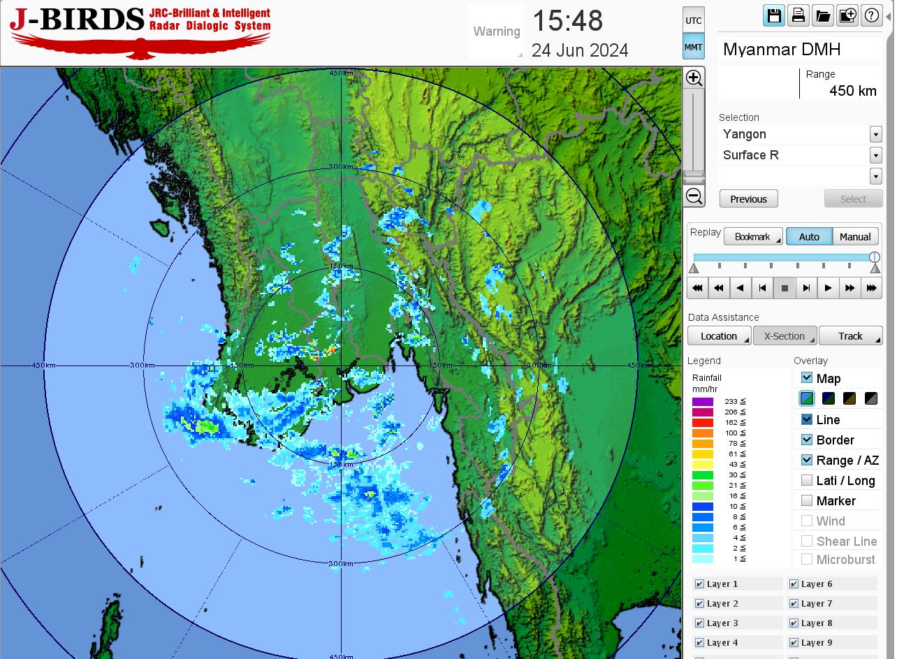 ဘင်္ဂလားပင်လယ်အော်အခြေအနေ။ ကပ္ပလီပင်လယ်ပြင်နှင့် ဘင်္ဂလားပင်လယ်အော်တောင်ပိုင်းတို့တွင် မုတ်သုံလေ အားကောင်းရာမှ အားအလွန်ကောင်းနေပြီး၊ ကျန်ဘင်္ဂလားပင်လယ်အော်တွင် မုတ်သုံလေ အားအသင့်အတင့် ရှိနေပါသည်။