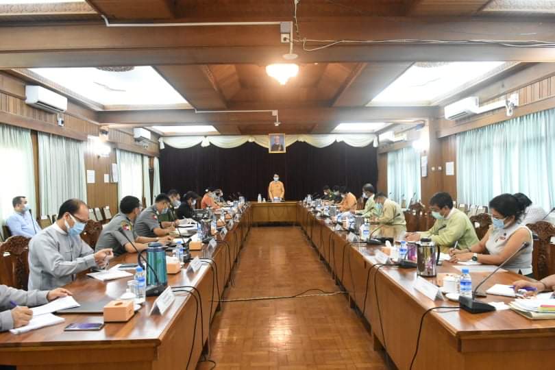 ရန်ကုန်တိုင်းဒေသကြီး ကိုဗစ်-၁၉ ရောဂါ ကာကွယ်ထိန်းချုပ်ရေးနှင့် အရေးပေါ်တုံ့ပြန်ရေး လုပ်ငန်းညှိနှိုင်း အစည်းအဝေးကို ယနေ့ နံနက် ၁၀ နာရီတွင် အစိုးရအဖွဲ့ရုံး၊ ခန်းမ(၃)၌ ပြုလုပ်ရာ ရန်ကုန်တိုင်းဒေသကြီး ဝန်ကြီးချုပ် ဦးဖြိုးမင်းသိန်း၊ တိုင်းဒေသကြီးဝန်ကြီးများနှင့် တိုင်းဒေသကြီး ကိုဗစ်-၁၉ ရောဂါ ကာကွယ်ထိန်းချုပ်ရေးနှင့် အရေးပေါ်တုံ့ပြန်ရေး လုပ်ငန်းကော်မတီဝင်များ တက်ရောက်ကြသည်။