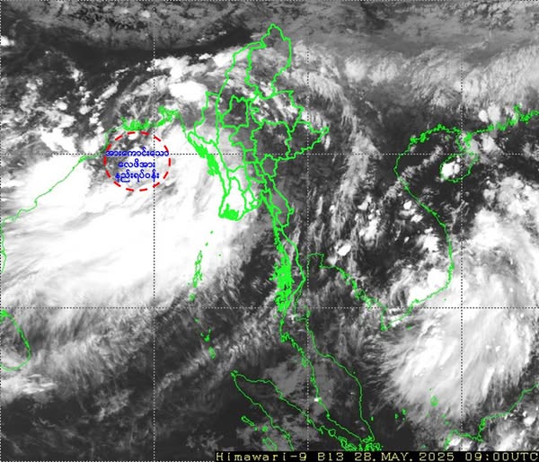 ဘင်္ဂလားပင်လယ်အော်အခြေအနေ။ ယနေ့မြန်မာစံတော်ချိန် ၁၅:၃၀ နာရီအချိန် တိုင်းထွာချက်များအရ ဘင်္ဂလားပင်လယ်အော် အနောက်မြောက်ပိုင်း(အိန္ဒိယနိုင်ငံ၊ ဩရိဿပြည်နယ်ကမ်းလွန်)တွင် ဖြစ်ပေါ်နေသော အားကောင်းသောလေဖိအားနည်းရပ်ဝန်း(Well Marked Low Pressure Area)သည် ဆက်လက်တည်ရှိနေပါသည်။ အဆိုပါ အားကောင်းသော လေဖိအားနည်းရပ်ဝန်းသည် မြောက်ဘက်သို့ ဖြည်းညှင်းစွာ ရွေ့လျားနိုင်ပြီး၊ ပိုမိုအားကောင်းလာနိုင်ကာ နောက် ၂၄ နာရီအတွင်း မုန်တိုင်းငယ်(Depression)အဖြစ်သို့ ရောက်ရှိနိုင်သည်ဟု ခန့်မှန်းရပါသည်။ ကပ္ပလီပင်လယ်ပြင်နှင့် ဘင်္ဂလားပင်လယ်အော်တို့တွင် မုတ်သုံလေ အားအလွန်ကောင်းနေပါသည်။