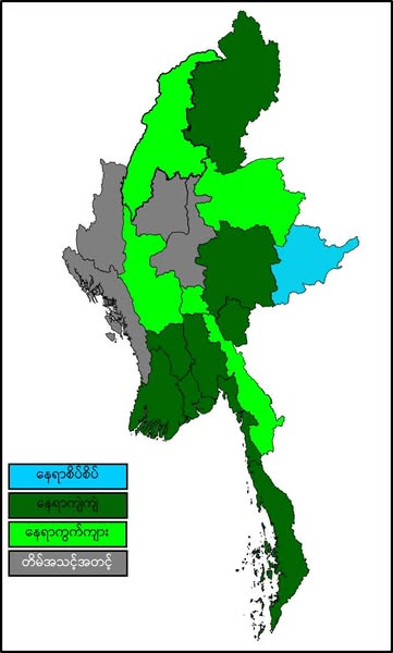 နောက်(၂)ရက်အတွက်ခန့်မှန်းချက်။ ရန်ကုန်တိုင်းဒေသကြီး၊ ပဲခူးတိုင်းဒေသကြီး၊ ဧရာဝတီတိုင်းဒေသကြီး၊ တနင်္သာရီတိုင်းဒေသကြီး၊ ကယားပြည်နယ်၊ ကရင်ပြည်နယ်၊ မွန်ပြည်နယ်နှင့် ရှမ်းပြည်နယ်(တောင်ပိုင်းနှင့် အရှေ့ပိုင်း)တို့တွင် နေရာကွက်ကျားမှ နေရာကျဲကျဲ မိုးထစ်ချုန်းရွာနိုင်ပါသည်။