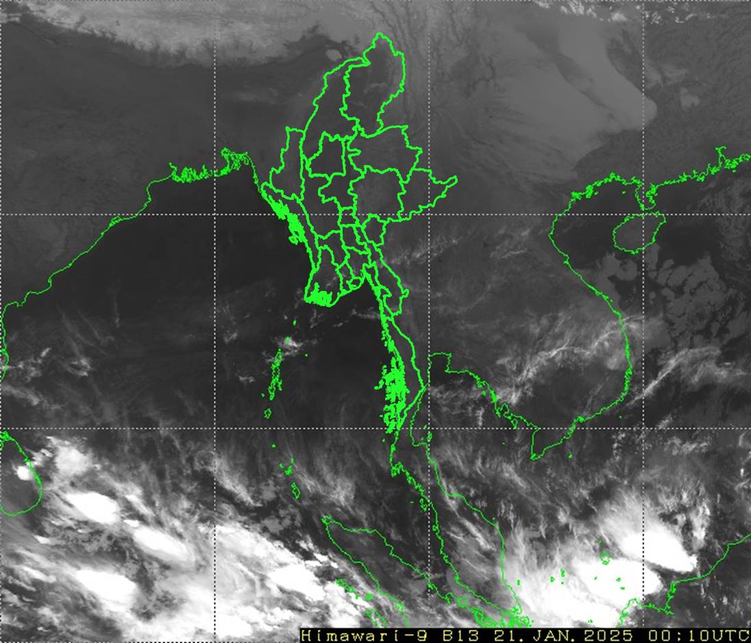 ယနေ့ညနေအထိခန့်မှန်းချက်အနေဖြင့် ရန်ကုန်တိုင်းဒေသကြီး၊ စစ်ကိုင်းတိုင်းဒေသကြီး အထက်ပိုင်း၊ ဧရာဝတီတိုင်း ဒေသကြီး၊ တနင်္သာရီတိုင်းဒေသကြီး၊ ကချင်ပြည်နယ်၊ ကရင်ပြည်နယ်နှင့် မွန်ပြည်နယ်တို့တွင် တိမ်အသင့်အတင့် ဖြစ်ထွန်းပြီး၊ ကျန်တိုင်းဒေသကြီးနှင့် ပြည်နယ်တို့တွင် အများအားဖြင့် သာယာမည်။