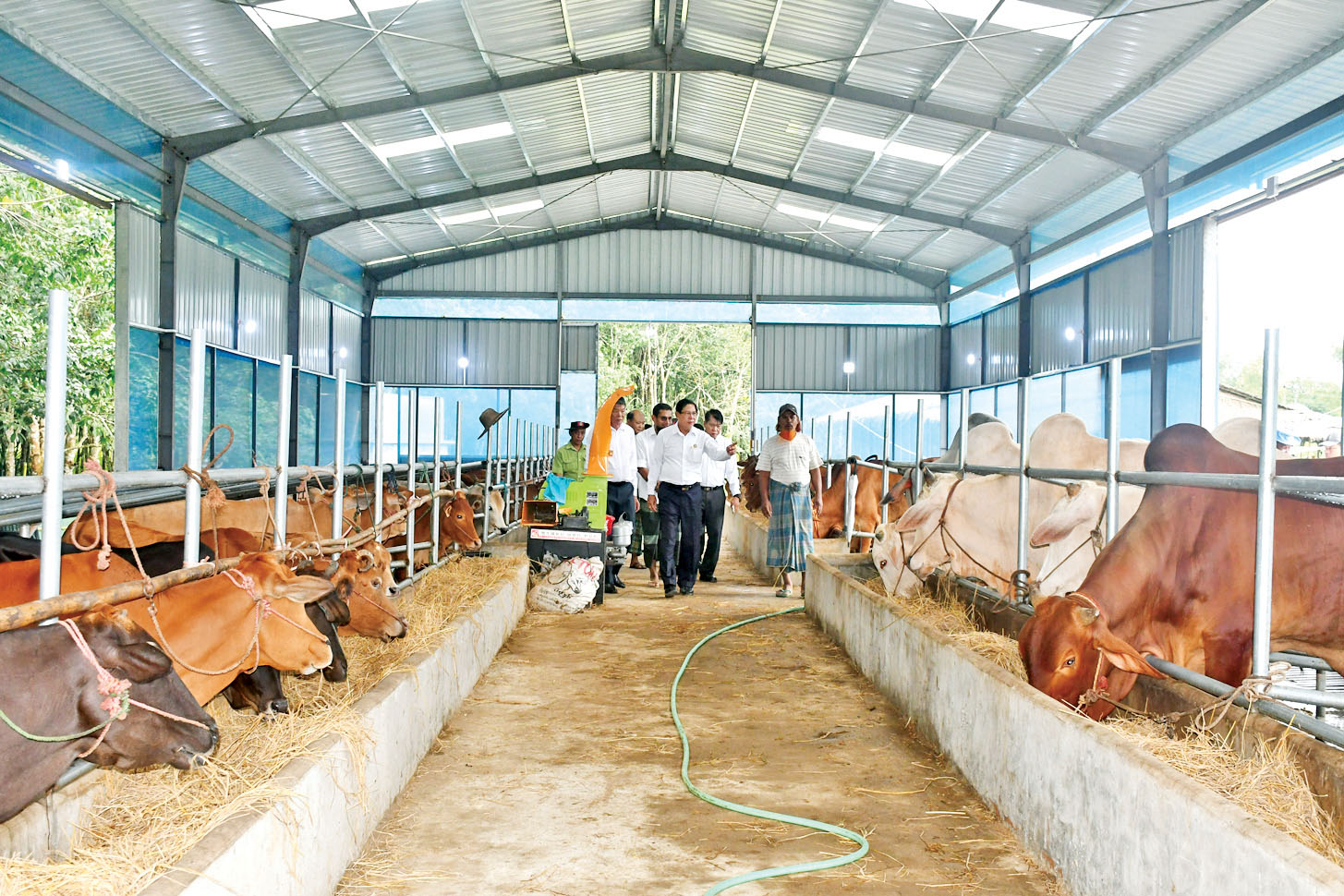 ထို့နောက်တွံတေးမြို့နယ် တွံတေးမွေးမြူရေးဇုန် ကန်ကြီးကုန်း ရေလှောင်ကန်အတွင်း ရေသိုလှောင်ထားရှိမှု၊ရေထုတ် ပြွန်၊ ရေပိုလွှဲ၊ ရေပိုလွှဲမြောင်းကူး တံတားများကြံ့ခိုင်မှုနှင့်ဆိုလာ စနစ်ဖြင့် ရေစုပ်ပန့်များအသုံးပြု၍ မွေးမြူရေးဇုန်အတွင်းရှိ ဂါလန် ၁၀၀၀၀ ဆံ့ Overhead Tank နှင့် ဂါလန် ၁၀၀၀၀ ဆံ့ မြေအောက်ရေကန်သို့ ရေစုပ်တင်မှုနှင့်ယင်းရေကန်မှ တွံတေးမွေးမြူရေးဇုန် အတွင်းရှိ မွေးမြူရေးခြံများသို့ ရေဖြန့်ဝေပေးနိုင်ရေး လုပ်ငန်းဆောင်ရွက်နေမှု၊ မွေးမြူရေးဇုန် ကော်မတီစီမံခန့်ခွဲရေးရုံး တည်ဆောက်နေမှုနှင့် အစာစက်ရုံ တည်ဆောက်နေမှု၊ မွေးမြူရေးခြံတွင် ဒေသနွားအကောင်ရေ ၅၅ ကောင် မွေးမြူထားရှိမှု၊တွံတေး တူးမြောင်းမှ တွံတေးမွေးမြူရေးဇုန်သို့ ဆိုလာစနစ်ဖြင့်ရေတင်ခြင်း လုပ်ငန်းဆောင်ရွက်နေမှု၊ မွေးမြူရေးခြံတွင် ဝက်အကောင်ရေ ၁၆၃ ကောင်၊ ဥစားကြက်အကောင်ရေ ၁၅၀၀၀ နှင့် အသားတိုးကြက် အကောင်ရေ ၃၅၀၀ မွေးမြူထား ရှိမှုတို့ကို ကြည့်ရှုစစ်ဆေးသည်။