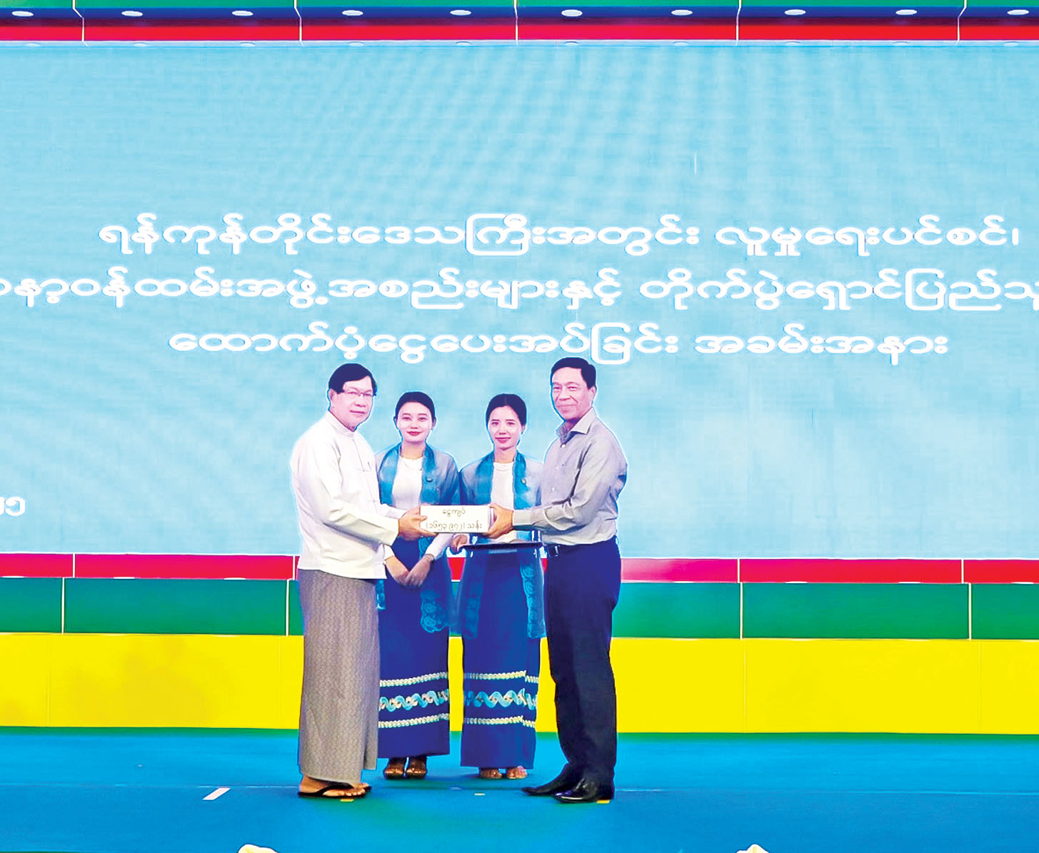 ၂၀၂၅-၂၀၂၆ ဘဏ္ဍာနှစ်အတွက် ရန်ကုန်တိုင်းဒေသကြီးအတွင်းရှိ အသက် ၈၅ နှစ်နှင့်အထက် သက်ကြီးပုဂ္ဂိုလ်များ လူမှုရေးပင်စင်ထောက်ပံ့ခြင်း၊ စေတနာ့ဝန်ထမ်းအဖွဲ့အစည်းများနှင့် ယာယီနေရပ် စွန့်ခွာပြည်သူများအတွက် ထောက်ပံ့ကြေးပေးအပ်ခြင်းအခမ်းအနားကို ယနေ့နံနက်ပိုင်းတွင် ရန်ကုန်တိုင်းဒေသကြီးအစိုးရအဖွဲ့ရုံး မင်္ဂလာခန်းမ၌ ကျင်းပသည်။