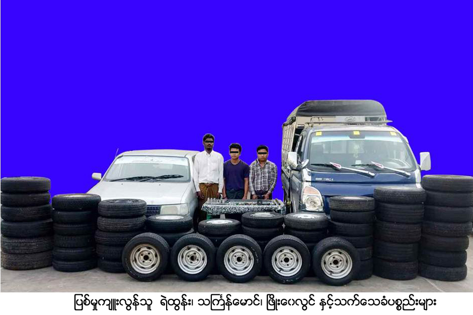 ရန်ကုန် အရှေ့ပိုင်းခရိုင်ရဲတပ်ဖွဲ့မှူး အနီးကပ်ကြီး ကြပ်၍ အရှေ့ပိုင်းခရိုင်ရဲတပ်ဖွဲ့မှူးရုံး၊ မှုခင်းနှိမ်နင်းရေးဌာနစုမှ တပ်ဖွဲ့ဝင်များသည် ခရိုင်နယ်မြေအတွင်း ဖြစ်ပွား ပေါ်ပေါ်က်မှုမရှိသေးသည့် ခိုးမှုများဖော်ထုတ်နိုင်ရေးအတွက် သတင်းစုံစမ်းဆောင်ရွက်နေစဉ် တာမွေမြို့နယ်နှင့် မင်္ဂလာတောင်ညွန့်မြို့နယ်များတွင် ကားဘီးများဖြုတ်ခိုးခံရကြောင်း သတင်းရရှိသဖြင့် လိုက်လံစုံစမ်းခဲ့ရာ ဖေဖော်ဝါရီ ၁၈ ရက်နေ့တွင် ကားဘီးများ ဖြုတ်ခိုးမှုဖြင့် ပြစ်ချက်ဟောင်းရှိသူ မှော်ဘီမြို့နယ်၊ ဘွက်ကြီး ရပ်ကွက်၊ ဘွက်ကြီးလမ်းနေသူများဖြစ်သည့် ဖြိုးဝေလွင်(ခ) ဝဲလေး (၂၇)နှစ်နှင့် သင်္ကြန်မောင် (၂၀)နှစ်တို့အား နေအိမ်များတွင် ဖမ်းဆီးရမိခဲ့သည်။
