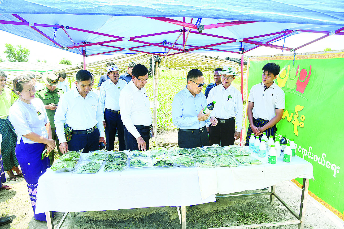 ဦးစွာ နိုင်ငံတော်စီမံအုပ်ချုပ်ရေးကောင်စီဒုတိယဥက္ကဋ္ဌ ဒုတိယဝန်ကြီးချုပ်နှင့် အဖွဲ့ဝင်များသည် ညောင်နှစ်ပင်စိုက်ပျိုးမွေးမြူရေးအထူးဇုန်ရှိ စိမ်းလန်းစိုက်ပျိုးထုတ်လုပ်ရေးနှင့် အထွေထွေရောင်းဝယ် ရေး သမဝါယမအသင်းလီမိတက်အသင်းနှင့် “ထွန်း” ဓာတုကင်းလွတ်သမဝါယမအသင်း စိုက်ပျိုးရေး ခြံများသို့ရောက်ရှိပြီး မုန်ညင်း စိမ်း/ ဖြူ၊ ယုဆိုင်၊ ထိုင်ဝမ်မုန်ညင်း၊ ဆလပ်၊ ချဉ်ပေါင်၊ မုန်လာ၊ ဖက်ဖယ်၊ ကင်ပွန်းချဉ်၊ ဆူးပုပ်၊ နံနံပင်နှင့် အခြားရာသီပေါ်သီးနှံများ စိုက်ပျိုးထားရှိမှု၊ ခြံထွက်ဟင်းသီး ဟင်းရွက်များ၊ ဈေးကွက်တင်ပို့မှုနှင့် အပင်စွန့်ပစ်ပစ္စည်းနှင့် အီးအမ်ဘိုကာရှီ ရောစပ်ထားသည့် ရွက်ဖျန်းအားတိုးဆေး၊ ကာကွယ်ဆေးများ အသုံးပြုမှုတို့ကို လိုက်လံ ကြည့်ရှုပြီး သိရှိလိုသည်များကို မေးမြန်းဆွေးနွေးသည်။