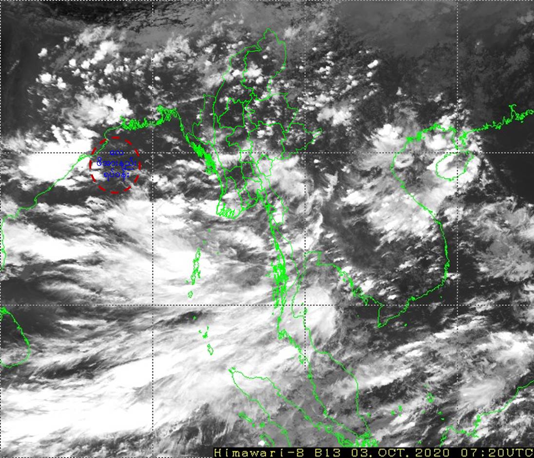 မနက်ဖြန်နံနက်အထိ ခန့်မှန်းချက်။ စစ်ကိုင်းတိုင်းဒေသကြီးအောက်ပိုင်းနှင့် မကွေးတိုင်းဒေသကြီးတို့တွင် နေရာကွက်ကျား၊ နေပြည်တော်၊ မန္တလေးတိုင်းဒေသကြီး၊ ရှမ်းပြည်နယ်(အရှေ့ပိုင်း)၊ ရခိုင်ပြည်နယ်နှင့် ကယားပြည်နယ်တို့တွင် နေရာကျဲကျဲ၊ စစ်ကိုင်းတိုင်းဒေသကြီးအထက်ပိုင်း၊ ပဲခူးတိုင်းဒေသကြီး၊ ကချင်ပြည်နယ်၊ ရှမ်းပြည်နယ်(မြောက်ပိုင်းနှင့် တောင်ပိုင်း)နှင့် ချင်းပြည်နယ်တို့တွင် နေရာစိပ်စိပ်နှင့် ကျန်တိုင်းဒေသကြီးနှင့် ပြည်နယ်တို့တွင် နေရာအနှံ့အပြား မိုးထစ်ချုန်းရွာပြီး၊ ရန်ကုန်တိုင်းဒေသကြီးနှင့် တနင်္သာရီတိုင်းဒေသကြီးတို့တွင် နေရာကွက်၍ မိုးကြီးနိုင်ပါသည်။ ရွာရန်ရာနှုန်း(၈၀) ဖြစ်ပါသည်။