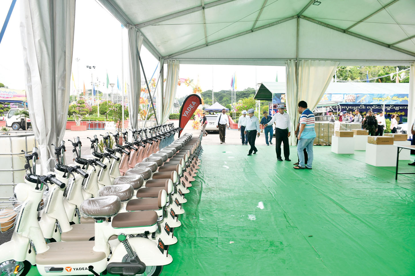 MSME ထုတ်ကုန်ပစ္စည်းများ၊ ဒေသထွက်ကုန်ပစ္စည်းများ ရောင်းချမည့် ရန်ကုန်မြို့ ပြည်သူ့ရင်ပြင် တန်ဆောင်တိုင်ဈေးရောင်းပွဲတော်နှင့် ဂီတဖျော်ဖြေပွဲ ပြင်ဆင် ဆောင်ရွက်နေမှု များကို ယနေ့ မွန်းလွဲပိုင်းတွင် ရန်ကုန်တိုင်းဒေသကြီးဝန်ကြီးချုပ် ဦးစိုးသိန်းနှင့် တိုင်းဒေသကြီး ဝန်ကြီးများ သွားရောက်ကြည့်ရှုစစ်ဆေးကြသည်။