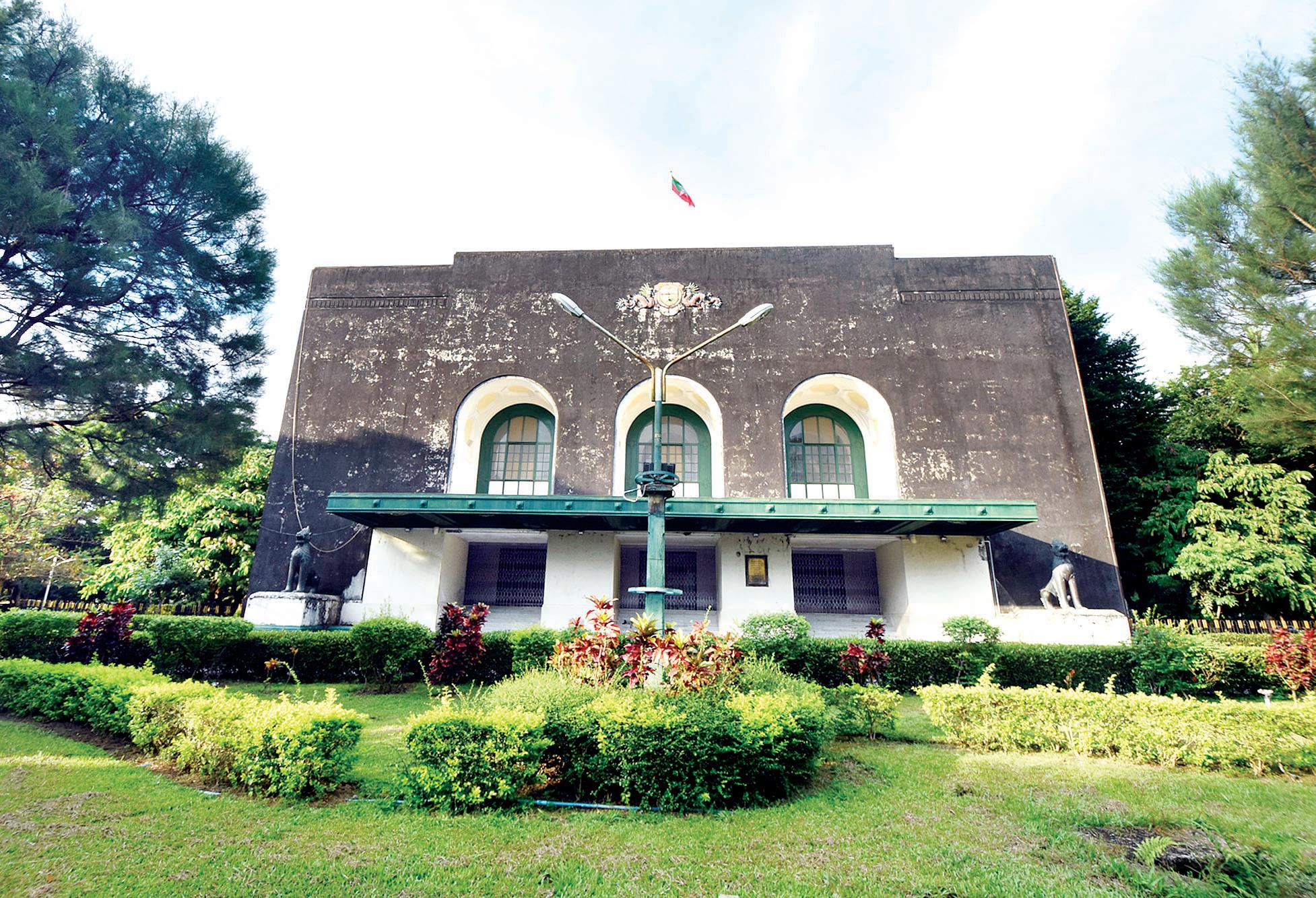 ၁၉၂၉ ခုနှစ် အကုန်လောက်မှာ ဘွဲ့နှင်း သဘင်အဆောက်အအုံ အပြင်ပန်းအကြမ်း ထည် ပြီးသလောက် ဖြစ်သွားပါတယ်။ အဲဒီမှာ ဘွဲ့နှင်းသဘင် အဆောက်အအုံနဲ့ ပတ်သက် ပြီး ဝေဖန်မှုတွေ ထွက်လာပါသတဲ့။ မြန်မာ မဆန်ဘူး၊ အနောက်တိုင်းပုံပေါက် နေတယ်   စသည်ဖြင့်   ဝေဖန်ကြသတဲ့။ ဒါကြောင့် မြန်မာဆန်ရလေအောင် ခြင်္သေ့ ကြီးတွေကို ဘွဲ့နှင်းသဘင်ရှေ့မှာ ခုမြင်ရ တဲ့အတိုင်း       ဖန်တီးပေးထားတာလို့ မှတ်သားမိဖူးပါတယ်။