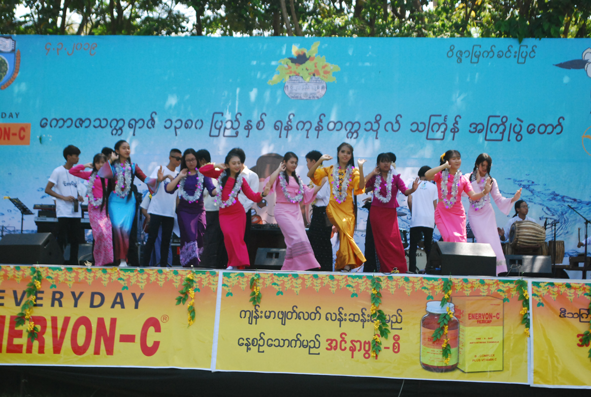ရန်ကုန်တက္ကသိုလ် သင်္ကြန်အကြိုပွဲတော်ကို ရန်ကုန်တက္ကသိုလ်(လှိုင်နယ်မြေ) ဒုတိယပါမောက္ခချုပ် ဒေါက်တာသောင်းထိုက်နှင့် ရန်ကုန်တက္ကသိုလ် ကျောင်းသားသမဂ္ဂ အဖွဲ့ဝင်များက ဖဲကြိုးဖြတ်၍ ဖွင့်လှစ်ပေးခဲ့ပြီး တက္ကသိုလ် ကျောင်းသူလေးများက သင်္ကြန်ယိမ်းအကများဖြင့် ဖျော်ဖြေတင်ဆက်ခဲ့ကြသည်။