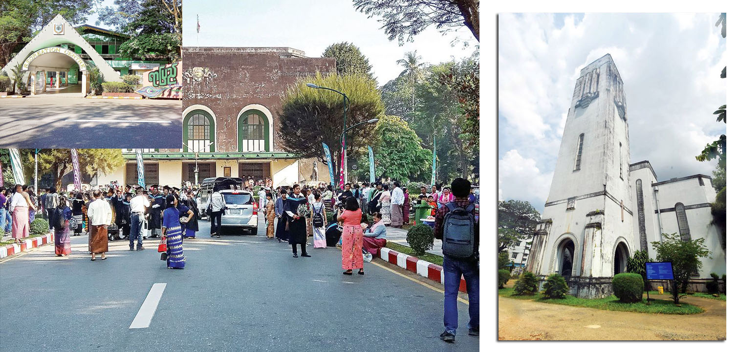 ပြီးခဲ့တဲ့ ဒီဇင်ဘာလမှာ ကျောင်းထဲကို ရောက်သေးတယ်။ အပြောင်းအလဲမရှိ ပေမယ့် သစ်ပင်ခုတ်တယ်ကြားလို့ သစ်ပုတ် ပင်ကြီး ကျန်သေးသလားဆိုပြီး သူငယ်ချင်း အချင်းချင်း နောက်ပြောင်ရင်း ရောက်ခဲ့သေး တယ်။ ကျောင်းကြီးက စိမ်းလန်းစိုပြည်တုန်း ပါပဲ။ အီကို ကင်တင်န်းကိုသွားတဲ့ စင်္ကြံလမ်းကတော့ ကျွန်တော်တို့ ခေတ်လို ဟာလာဟင်းလင်းကြီး မဟုတ်တော့ဘူး။ တစ်ခုတော့ ရှိမယ်။ ရန်ကုန်တက္ကသိုလ်ဝင်းထဲမှာ တံတိုင်းတွေ ခတ်တာတော့ ခံစားလို့မရဘူး။ တက္ကသိုလ်အပန်းဖြေရိပ်သာ နောက်မှာဝင်းတံတိုင်းတွေ ခတ်တာကိုတော့ သဘောမကျကြဘူး။ ရန်ကုန်တက္ကသိုလ်ကြီးအတွင်းမှာ လွတ်လွတ်လပ်လပ် သွားလာလို့ရအောင် ယခင်ထဲက ဝင်းခတ်တာမရှိခဲ့ဘူး။ ကြုံလို့ ပြောပြတာပါ။ လူမှုကွန်ရက်တွေမှာလည်း တွေ့ရမှာပါ။ ရန်ကုန်တက္ကသိုလ်ကြီး နှစ်ရာပြည့်ပွဲဟာ တစ်ကြိမ်ပဲကြုံဆုံရတဲ့ ပွဲဖြစ်တဲ့အပြင် အစဉ်အလာကြီးမားတဲ့ ကျောင်းတော်ကြီးဖြစ်တာကြောင့် အားလုံး ဝိုင်းဝန်းပြီး ကဏ္ဍနယ်ပယ်အသီးသီးကနေ ပူးပေါင်းမှုနဲ့ သမိုင်းမှတ်တိုင် စိုက်ထူစေလို ပါကြောင်း ဆန္ဒပြုလိုက်ပါတယ်။