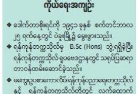 ဖြေ။ ။ ရန်ကုန်တက္ကသိုလ်မှာရှိတဲ့ ပါမောက္ခကြီးတွေ၊ ဆရာ့လက်ထက်မှာရှိတဲ့ ပါမောက္ခကြီးတွေ အငြိမ်းစားတွေယူကုန်ကြပြီ။ အဲဒီကနေ ဆရာတို့ ပြုစုပေးလိုက်တဲ့ Ph.D.ရလာတဲ့ ပါမောက္ခတွေ ဒီနေ့ဆက်လက်ပြီးတော့ တာဝန်ယူနေကြတယ်။ ဘာပဲပြောပြော နောက်မျိုးဆက်တွေ ရန်ကုန်တက္ကသိုလ်ကပေးတဲ့ Ph.D. Program ရဲ့ အရည်အသွေး၊ အဆင့်အတန်းဟာ မနိမ့်ပါဘူးဆိုတာ ဆရာပြောလိုပါတယ်။
