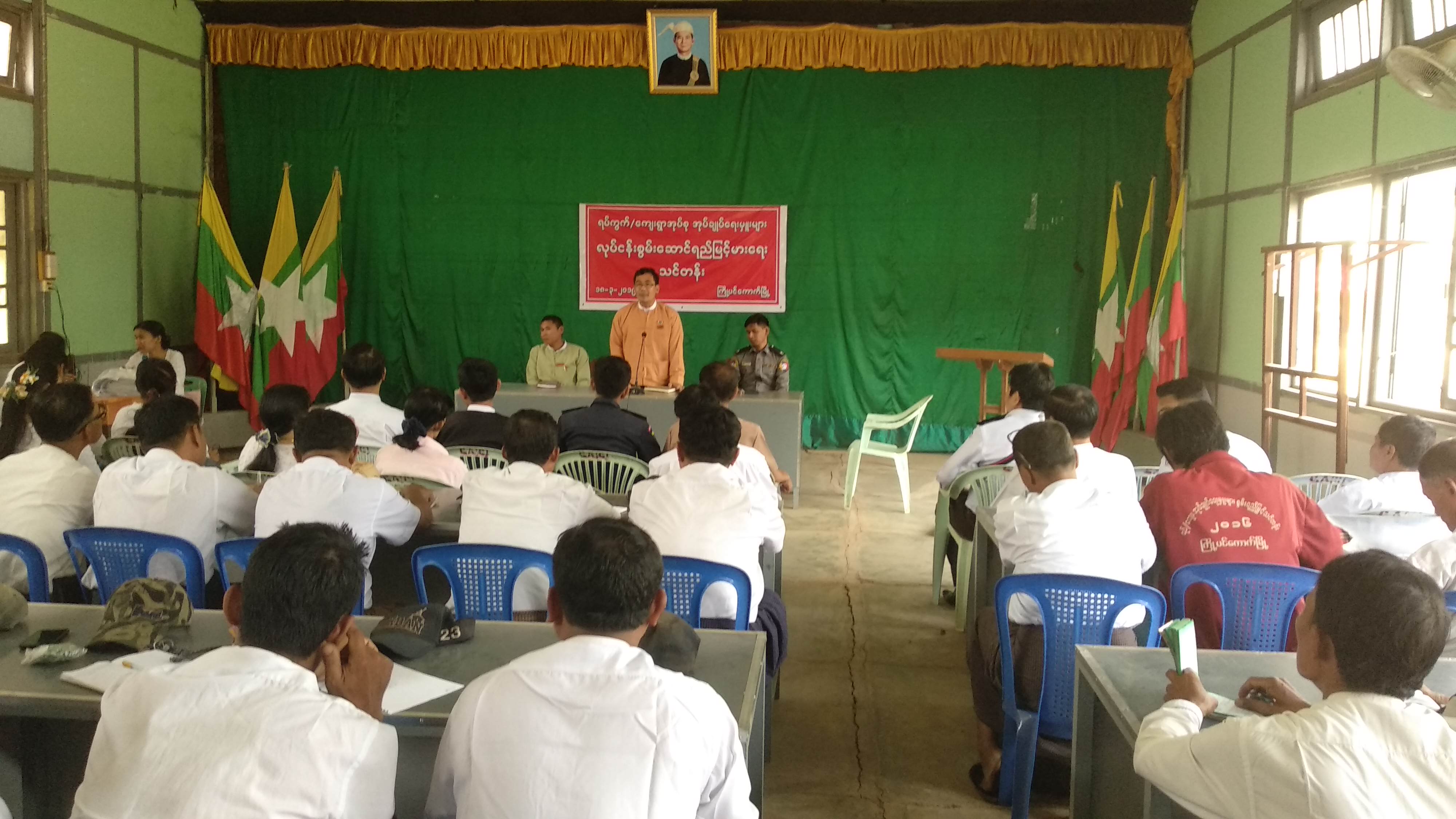 ရှေ့ဦးစွာ ပြည်သူ့လွှတ်တော်ကိုယ်စားလှယ် ဦးဌေးမင်းသိန်းကအဖွင့်အမှာစကားပြောကြားပြီး မြို့နယ်အုပ်ချုပ် ရေးမှူး ဦးတင်ကိုကိုက ရပ်ကျေးအုပ်ချုပ်ရေးမှူးများသည် အများပြည်သူတို့၏ အကျိုးစီးပွားနှင့်သက်ဆိုင်သောလုပ်ငန်း များကို လုပ်ကိုင်ဆောင်ရွက်ရာတွင် လုပ်ထုံးလုပ်နည်း ဥပဒေ၊ နည်းဥပဒေများနှင့်အညီ လုပ်ကိုင်ဆောင်ရွက် တတ်စေရန် ရည်ရွယ်၍ဖွင့်လှစ်ရခြင်းဖြစ်ကြောင်း ရပ်/ကျေးစာရေးဝန်ထမ်းများကလည်း အုပ်ချုပ်ရေးမှူးများနှင့်အညီ ရပ်ရွာအကျိုးဖွံ့ဖြိုး တိုးတက်အောင် ပူးပေါင်းဆောင်ရွက်ကြစေလိုကြောင်း ပြောကြားခဲ့သည်။