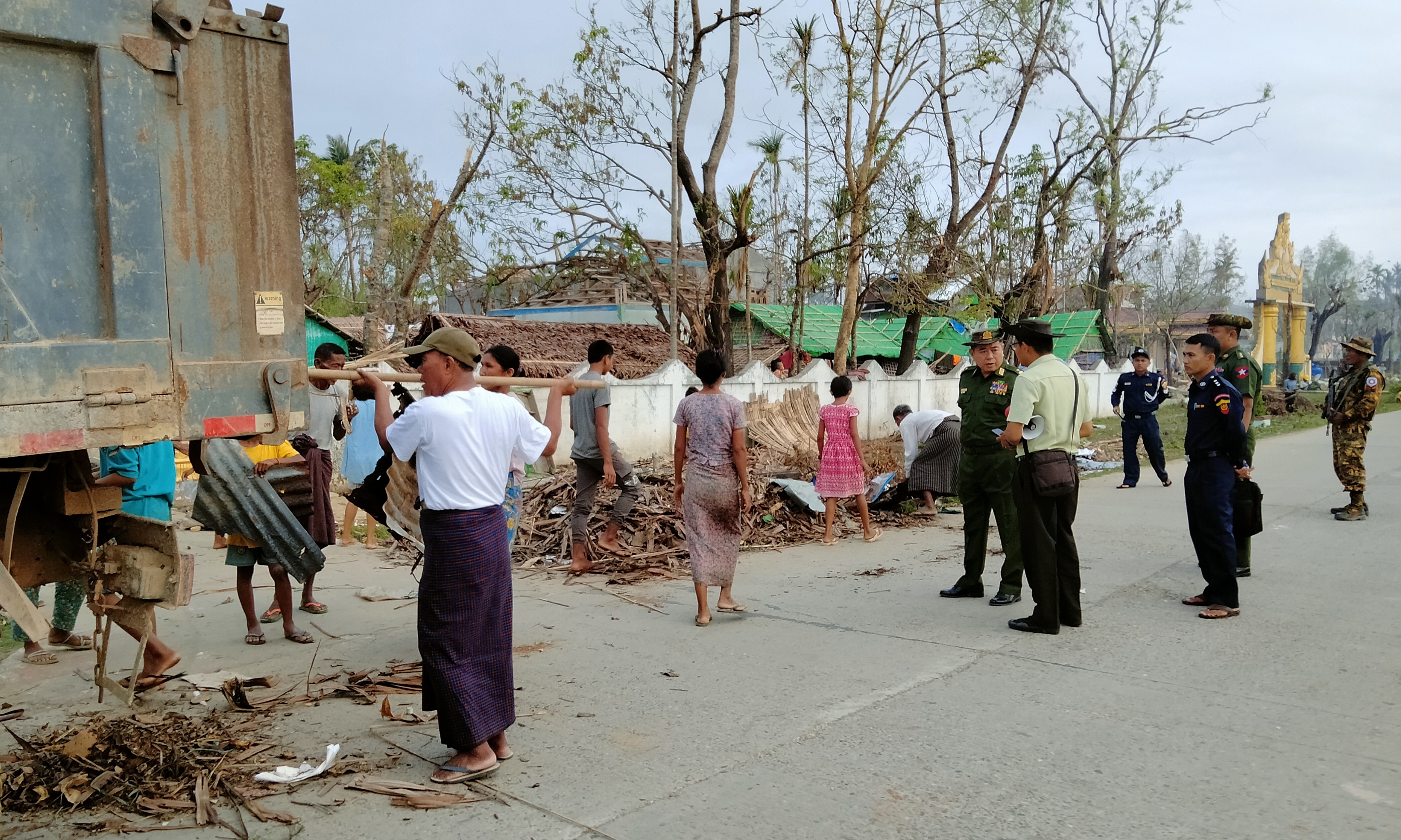 ရခိုင်ပြည်နယ်၊ စစ်တွေခရိုင်၊ ရသေ့တောင်မြို့တွင် ပြန်လည်ထူထောင်ရေးလုပ်ငန်းများ ဆောင်ရွက်ရန် ရောက်ရှိနေသော ဗိုလ်ချုပ်အောင်မျိုးထွန်းနှင့် တာဝန်ရှိသူများသည် ဇွန် ၃ ရက် နံနက်ပိုင်းက တောင်ရင်းတန်းရပ်ကွက်၊ မင်းဘာကြီးလမ်း တစ်လျှောက်တွင် ဌာနဆိုင်ရာဝန်ထမ်းများ၊ မြို့ပေါ် ရပ်ကွက် အုပ်ချုပ်ရေးမှူးများ၊ ရပ်မိ/ရပ်ဖများ၊ လူမှုရေးအသင်းအဖွဲ့များ၊ ရပ်ကွက်နေပြည်သူများနှင့် စုပေါင်းသန့်ရှင်းရေး လုပ်အားပေးနေမှုကို ကြည့်ရှုအားပေးသည်။