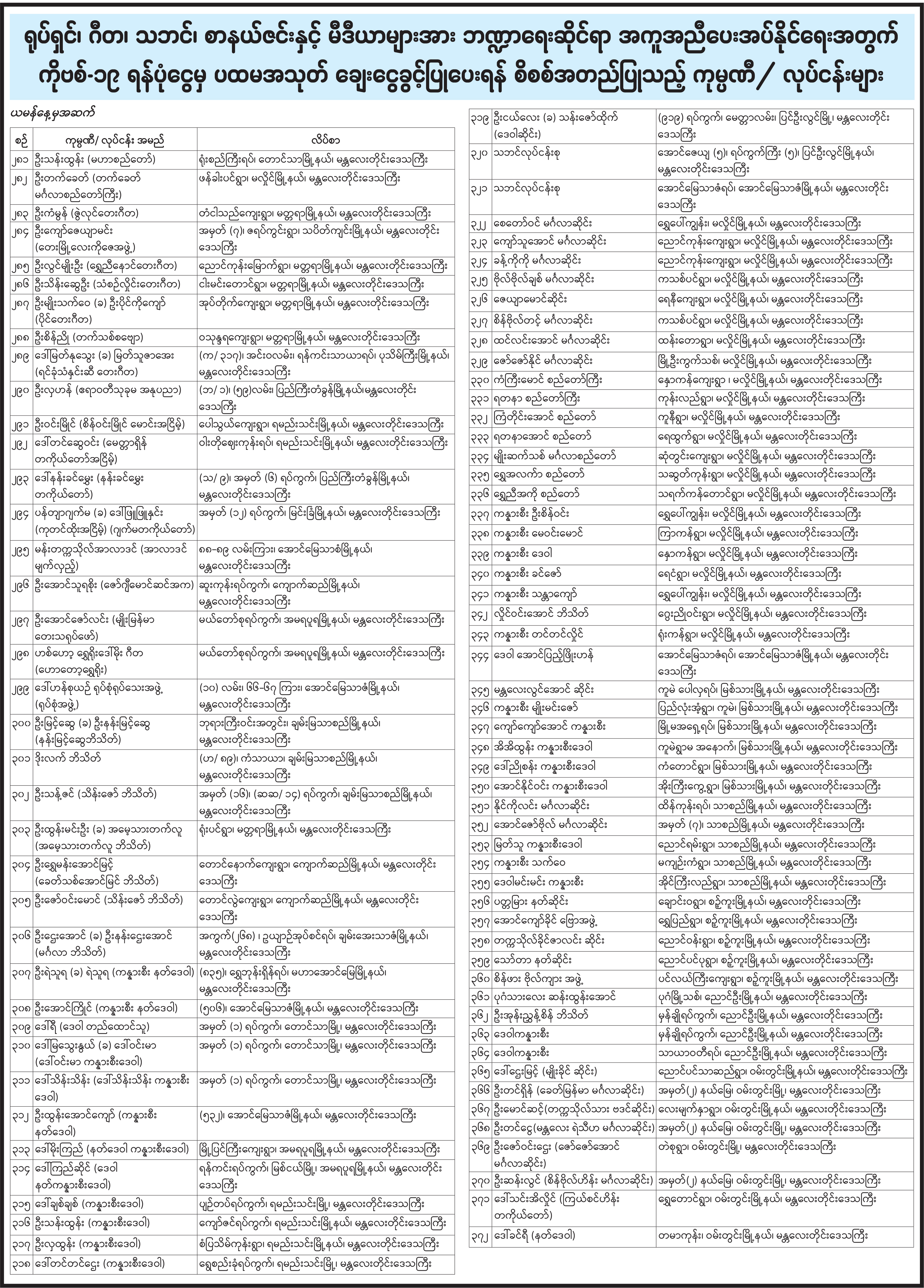 ရုပ်ရှင်၊ ဂီတ၊ သဘင်၊ စာနယ်ဇင်းနှင့် မီဒီယာများအား ဘဏ္ဍာရေးဆိုင်ရာ အကူအညီပေးအပ်နိုင်ရေးအတွက် ကိုဗစ်-၁၉ ရန်ပုံငွေမှ ပထမအသုတ် ချေးငွေ့ခွင့်ပြုပေးရန် စိစစ်အတည်ပြုသည့် ကုမ္ပဏီ/ လုပ်ငန်းများ