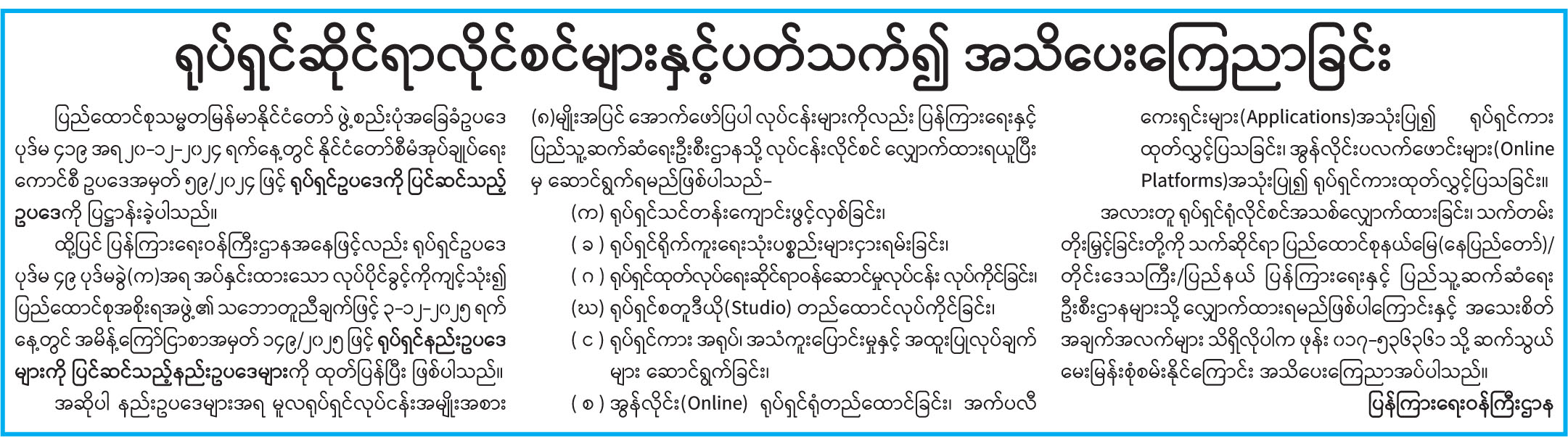 ရုပ်ရှင်ဆိုင်ရာလိုင်စင်များနှင့်ပတ်သက်၍ အသိပေးကြေညာခြင်း