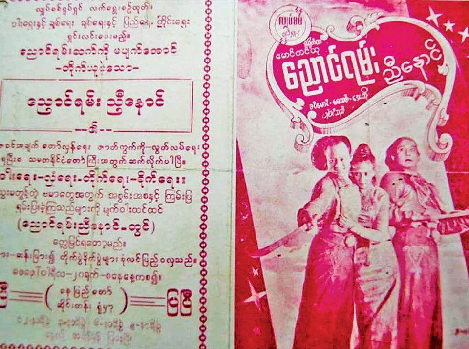 ကျွန်တော် ပြချင်တာပေါ့။ “ဗိုလ်ချုပ် မင်းဘာလဲ”၊ “သခင်မြ မင်းဘာလဲ” ကားနာမည်က မင်းဘာလဲပေါ့။ ကောင်းလိုက်တာ ဆရာရယ်။ အဲဒီတုန်းက တကယ့်မြန်မာ့အမျိုးသားခေါင်းဆောင်ကြီးကနေပြီးတော့ ရုပ်ရှင်ကို စိတ်ဝင်စားပြီးတော့ ရုပ်ရှင်ရုံမှာ တကယ့်သာမန်ပရိသတ်လိုလာပြီး အားပေးတာလေးကဖြင့် တကယ်ကြည်နူးစရာကောင်းပါတယ် ဆရာရယ်။ ဝမ်းလည်းသာပါတယ်။ ဆရာတို့ အရင်တုန်းက ရုပ်ရှင်လောကသားတွေနဲ့ အရင်တုန်းက ကျွန်တော်တို့ မျိုးချစ်ခေါင်းဆောင်ကြီးတွေနဲ့ ဒီလိုနေကြ ထိုင်ကြတာများ ကျွန်တော်တို့ ဂုဏ်လည်းယူပါတယ်။ ပီတိလည်း ဖြစ်တယ်။ အဲဒီတော့ ‘မင်းဘာလဲ’ ပြီးတော့ ဆက်ပါဦး ဆရာ။