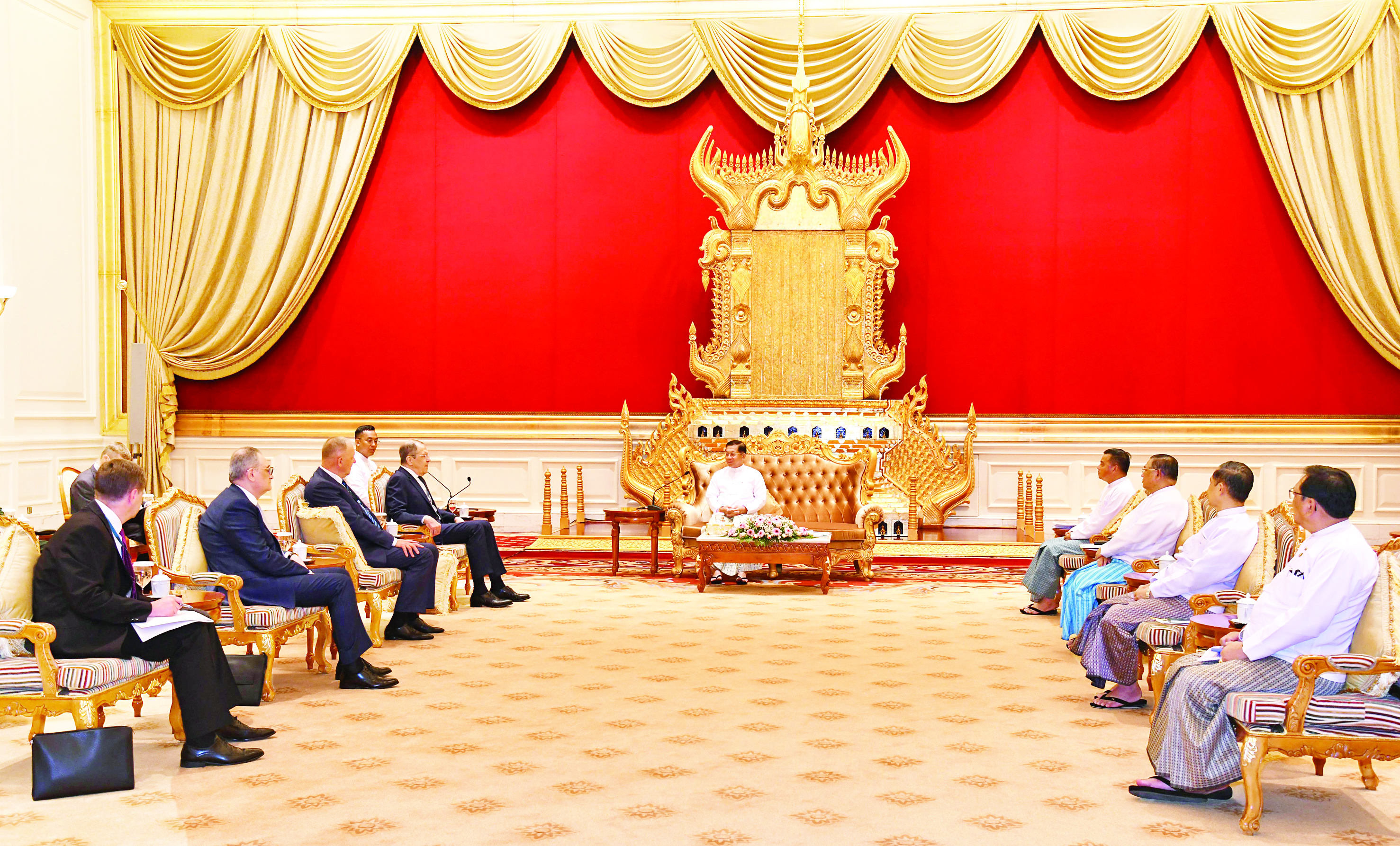 နိုင်ငံတော်စီမံအုပ်ချုပ်ရေးကောင်စီဥက္ကဋ္ဌ နိုင်ငံတော်ဝန်ကြီးချုပ် ဗိုလ်ချုပ်မှူးကြီး မင်းအောင်လှိုင် သည် ရုရှားဖက်ဒရေးရှင်းနိုင်ငံ နိုင်ငံခြားရေးဝန်ကြီး H.E. Sergey Lavrov ကို ယနေ့မွန်းလွဲပိုင်းတွင် နိုင်ငံတော် စီမံအုပ်ချုပ်ရေး ကောင်စီရုံး သံတမန်ဆောင် ဧည့်ခန်းမ၌ လက်ခံတွေ့ဆုံသည်။
