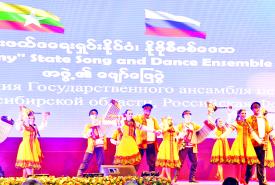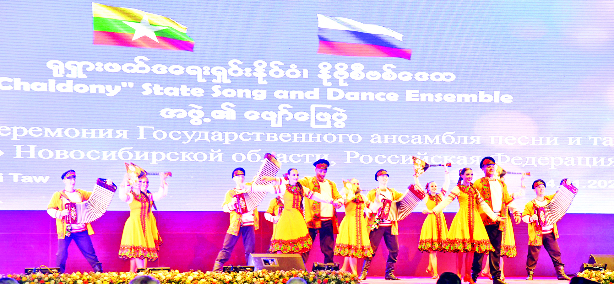 ရုရှားဖက်ဒရေးရှင်းနိုင်ငံ နိုဗိုစီဗစ်ဒေသမှ နိုဗိုစီဗစ် “Chaldony” State Song and Dance Ensemble အဖွဲ့မှ “မဟာရုရှားနှင့် ဆိုက်ဘေးရီးယား အမည်ရသည့် ပဒေသာကပွဲကို ယနေ့မွန်းလွဲပိုင်းတွင် နေပြည်တော်ရှိ မြန်မာအပြည်ပြည်ဆိုင်ရာ ကွန်ဗင်းရှင်းဗဟိုဌာန(၁)(MICC-1)၌ ကျင်းပပြုလုပ်ရာ ပြည်ထောင်စုသမ္မတမြန်မာနိုင်ငံတော် ယာယီသမ္မတ နိုင်ငံတော်လုံခြုံရေးနှင့် အေးချမ်းသာယာရေးကော်မရှင်ဥက္ကဋ္ဌ ဗိုလ်ချုပ်မှူးကြီး မင်းအောင်လှိုင် တက်ရောက်ကြည့်ရှုအားပေးသည်။