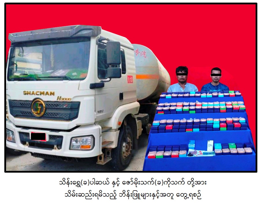 မူးယစ်ဆေးဝါးတားဆီးနှိမ်နင်းရေးရဲတပ်ဖွဲ့မှ တပ်ဖွဲ့ဝင်များပါဝင်သော ပူးပေါင်းအဖွဲ့သည် စက်တင်ဘာ ၁၄ ရက် မွန်းလွဲ ၁၂ နာရီခွဲတွင် သာစည်မြို့နယ်၊ ကျွဲတပ်ဆုံကျေးရွာအုပ်စု၊ ကျွဲတပ်ဆုံ ကျေးရွာအနီးတွင် အောင်ဇော်မိုး မောင်းနှင်ပြီး ဖိုးချင်းလိုက်ပါလာသည့် Wagon အမျိုးအစား မော်တော်ယာဉ်ကို ရပ်တန့် စစ်ဆေးရှာဖွေရာ ဘိန်းဆီခဲ ၃၆ ဒသမ ၁ ကီလိုကိုလည်းကောင်း၊ ထိုနေ့ မွန်းလွဲ ၂ နာရီတွင် တာချီလိတ် မြို့နယ်၊ ဖန်မင်ကျေးရွာအုပ်စု၊ မယ်ယန်းကျေးရွာရှိ ပူးပေါင်းစစ် ဆေးရေးဂိတ်တွင် ခင်မောင်သိန်း မောင်းနှင်ပြီး မအီနွန်း၊ အိုက်တစ်နှင့် အိုက်လွတ်တို့ လိုက်ပါလာသည့် TOYOTA CROWN မော်တော်ယာဉ်ကို ရပ်တန့်စစ်ဆေးရှာဖွေရာ ယာဉ်နောက်ခန်း ထိုင်ခုံကူရှင်အတွင်းမှ စိတ်ပြောင်းဆေးဝါးများဖြစ်သည့် Happy Water ၅ ဒသမ ၅၄ ကီလို၊ အက်တက်စီ ဆေးပြား ၂,၀၀၀ ပြား ကိုလည်းကောင်း။