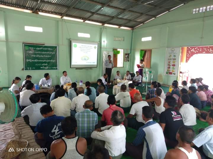 သင်တန်းတွင် တိုင်းဒေသကြီး လွှတ်တော်ကိုယ်စားလှယ် ဦးစံထွန်းက အမှာစကား ပြောကြားပြီး ခရိုင်ကျေးလက်ဒေသ ဖွံ့ဖြိုးတိုးတက်ရေး ဦးစီးဌာန ဦးစီးမှူးက စိုက်ပျိုးရေးဆိုင်ရာ အလေ့အကျင့်ကောင်းများ (GAP)သင်တန်း ဖွင့်လှစ်ရခြင်း၏ ရည်ရွယ်ချက်ကို ရှင်းလင်းပြောကြားသည်။