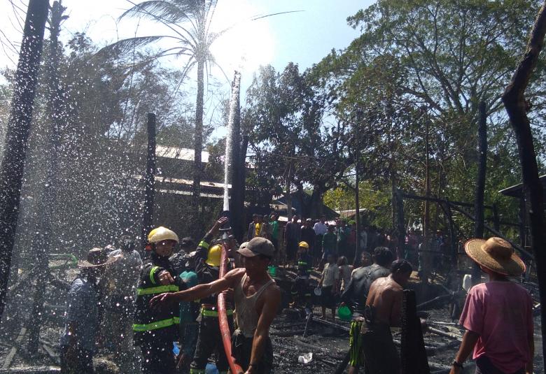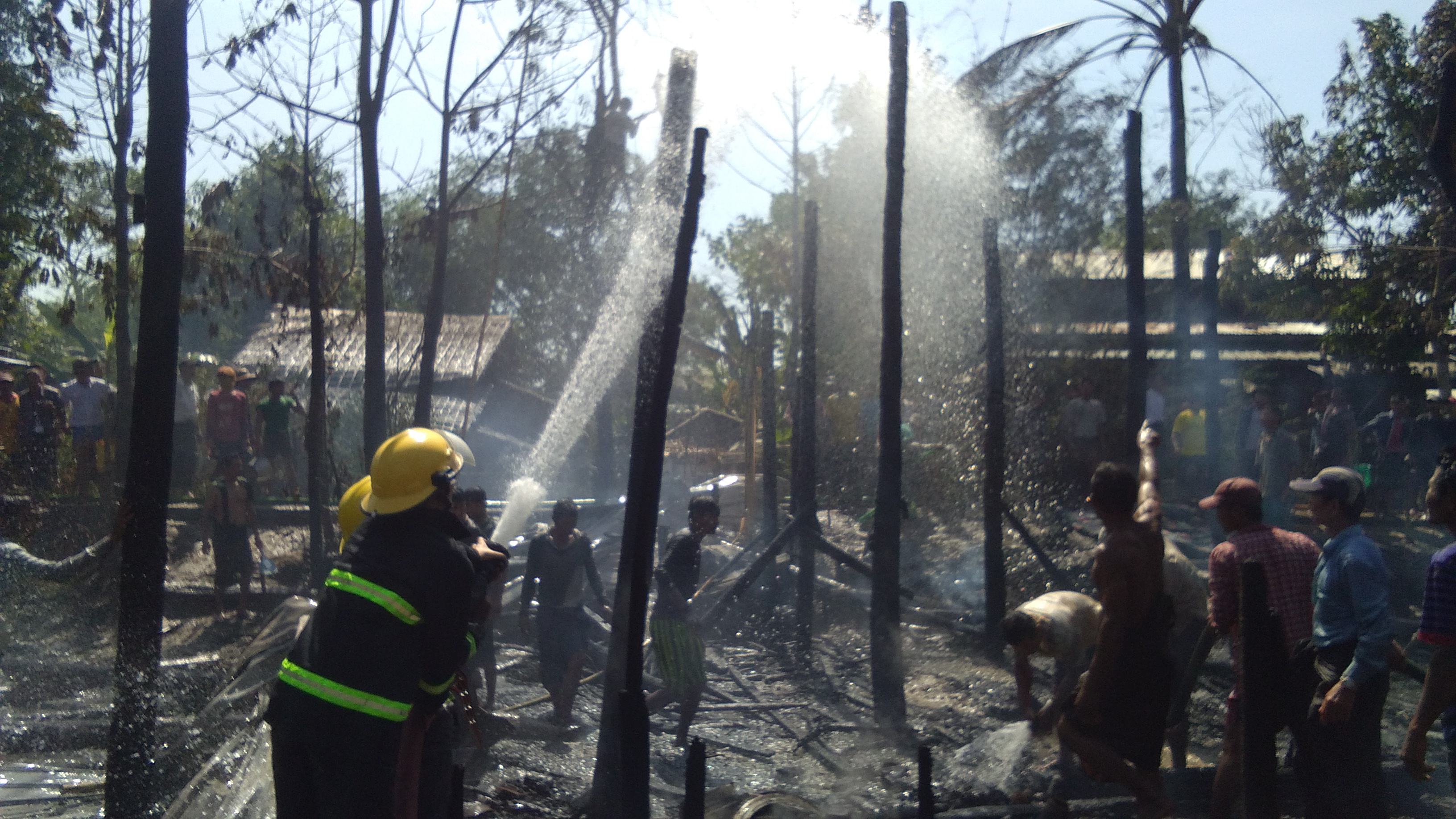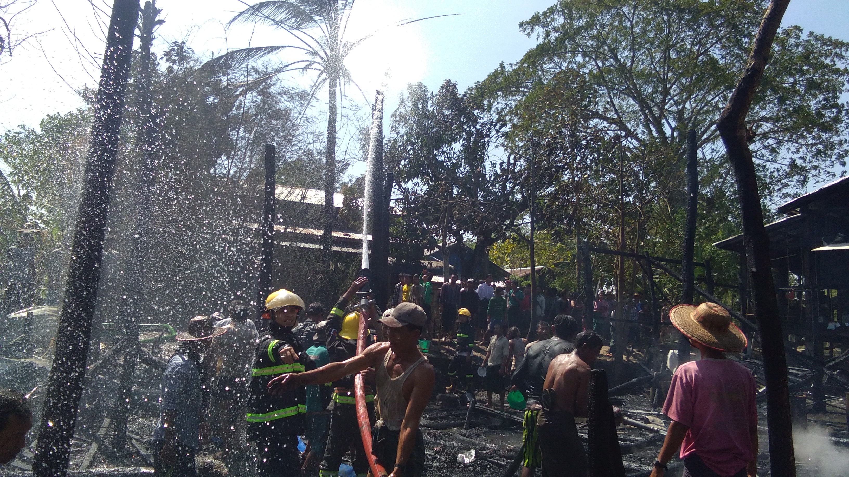 မီးလောင်မှုဖြစ်ပွားရာသို့ မြို့နယ်မီးသတ်ဦးစီးဌာနမှ မီးသတ်ဝန်ထမ်းများနှင့် ကျေးရွာပြည်သူများက ဝိုင်းဝန်းငြှိမ်းသတ်ခဲ့ရာ ၁၀ နာရီ ၄၀ မိနစ်တွင် မီးထိန်းနိုင်ခဲ့ပြီး ၁၀ နာရီ ၄၅ မိနစ်တွင် မီးငြိမ်းသွားခဲ့ကြောင်း သိရသည်။