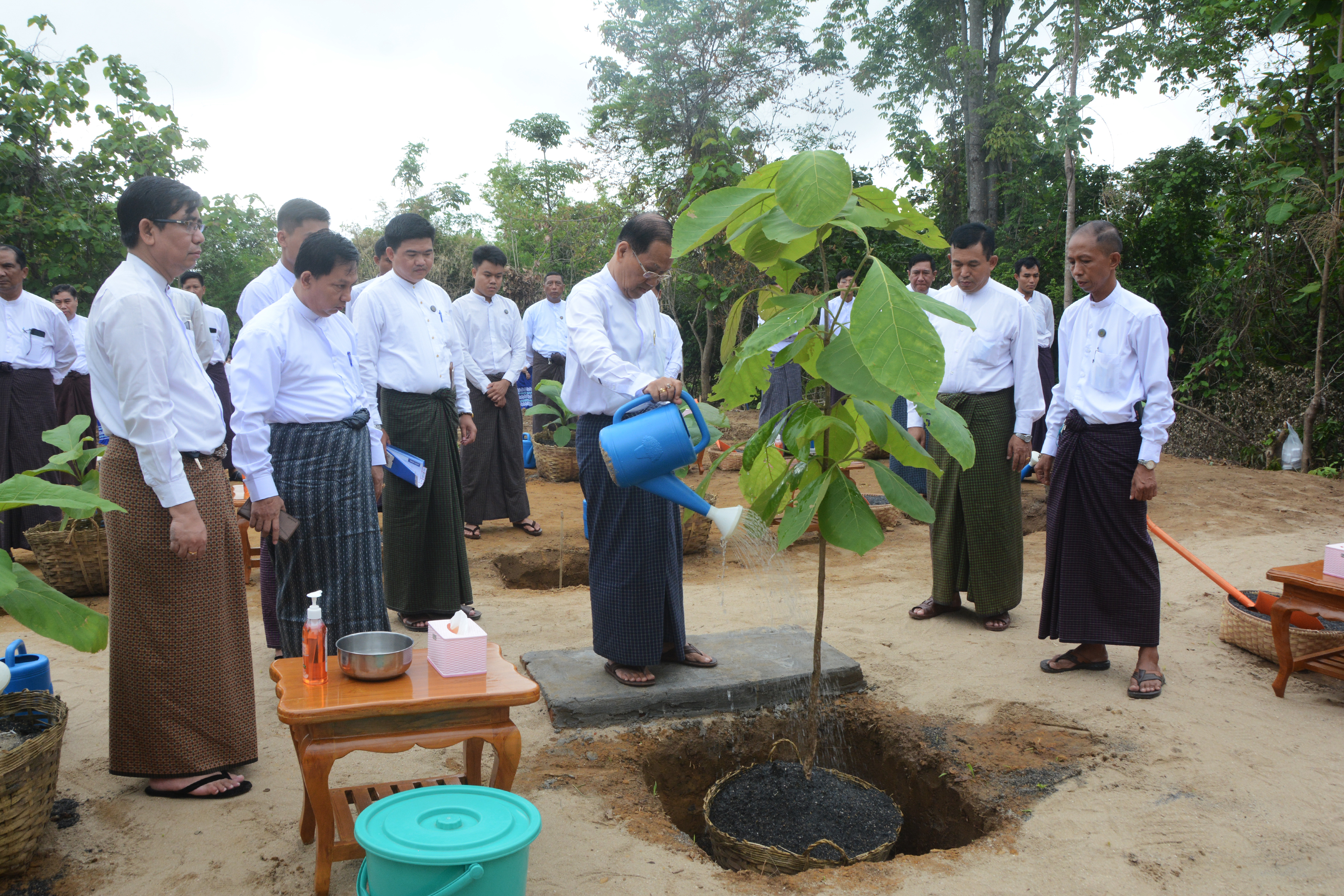 ထို့နောက် ပြည်ထောင်စုဝန်ကြီး၊ ဒုတိယဝန်ကြီးနှင့် တာဝန်ရှိသူများသည် အရာထမ်း အမှုထမ်းများ၏ စုပေါင်းသစ်ပင်စိုက်ပျိုးနေမှုကို ကြည့်ရှုအားပေးကြသည်။