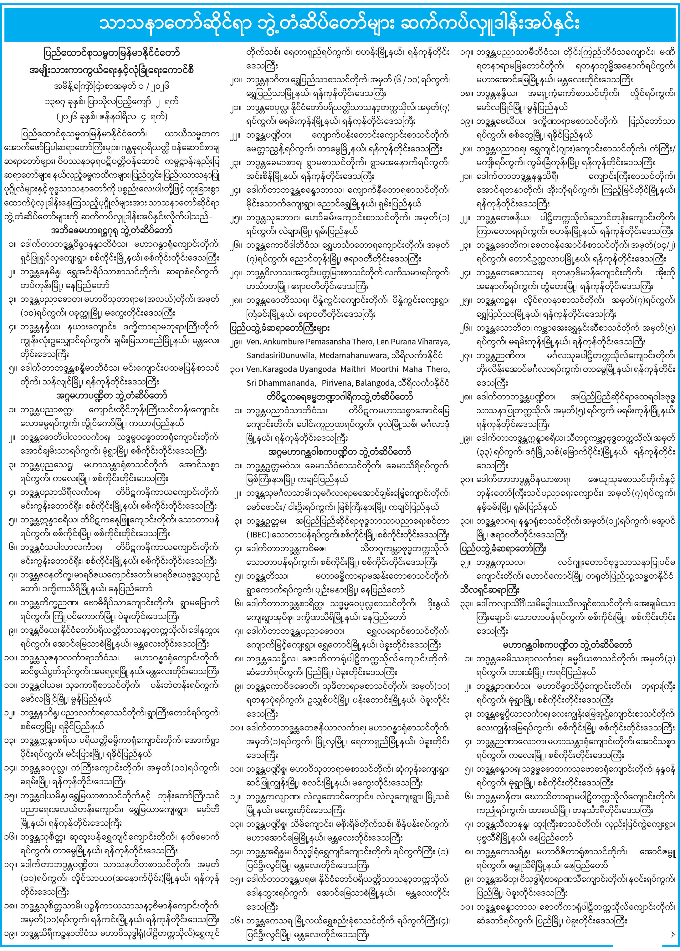 သာသနာတော်ဆိုင်ရာ ဘွဲ့တံဆိပ်တော်များ ဆက်ကပ်လှူဒါန်း