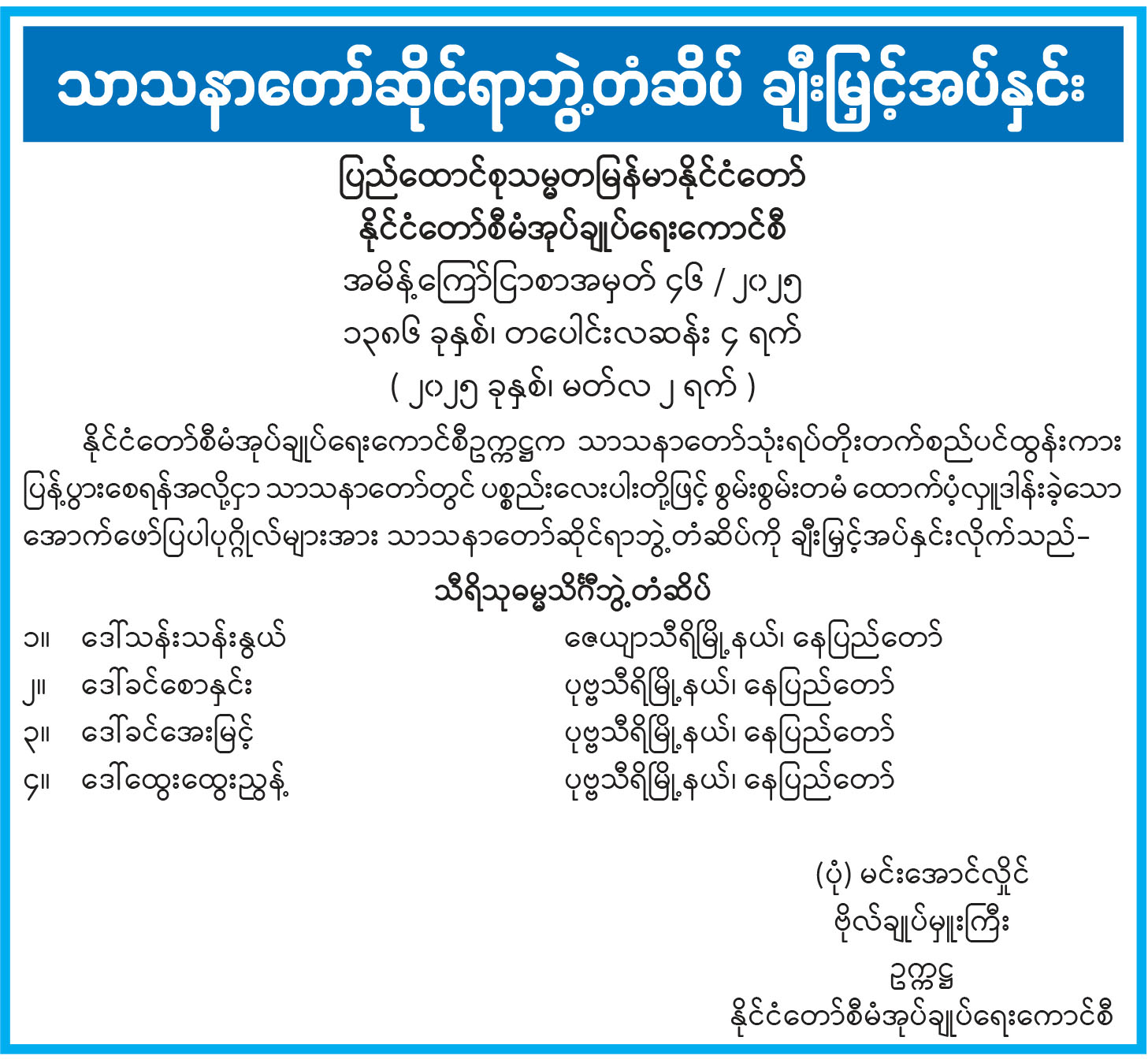 သာသနာတော်ဆိုင်ရာဘွဲ့တံဆိပ် ချီးမြှင့်အပ်နှင်း