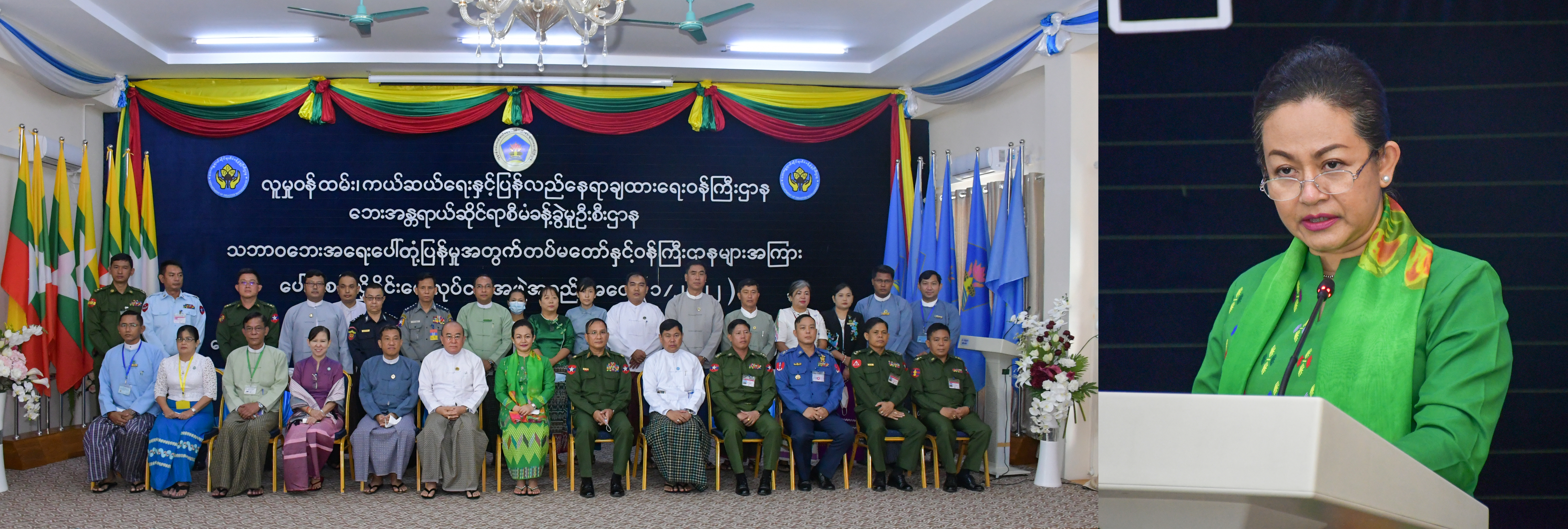 သဘာဝဘေးအန္တရာယ်ကျရောက်သည့်အခါ လျင်မြန်သော တုံ့ပြန်ဆောင်ရွက်မှုနှင့် အရေးပေါ် ကာလဆက်သွယ်ဆောင်ရွက်နိုင်ရေးလုပ်ငန်းစဉ်များကို အဖွဲ့အစည်းအားလုံးက ပူးပေါင်း ဆောင်ရွက်ကြရာတွင် အရပ်ဘက်-စစ်ဘက် ပူးပေါင်းဆောင်ရွက်မှုမှာလည်း အထူးအရေး ပါကြောင်း၊ အရပ်ဘက်-စစ်ဘက်ပူးပေါင်းဆောင်ရွက်မှု ပိုမိုအားကောင်းပြီး ထိရောက်သော လူသားချင်းစာနာမှု အကူအညီပေးရန်နှင့် အရေးပေါ်တုံ့ပြန်မှုလုပ်ငန်းများ ပိုမိုအားကောင်း လာစေရန် ရည်ရွယ်ချက်ဖြင့် လူမှုဝန်ထမ်း၊ ကယ်ဆယ်ရေးနှင့် ပြန်လည် နေရာချထားရေး ဝန်ကြီးဌာနက ဦးဆောင်ကာ အမျိုးသားသဘာဝဘေးအန္တရာယ်ဆိုင်ရာ စီမံခန့်ခွဲမှုလုပ်ငန်း ကော်မတီအသီးသီးမှ ကိုယ်စားလှယ်များ၊ ကာကွယ်ရေးဝန်ကြီးဌာနမှ ကိုယ်စားလှယ်များ၊ မြန်မာနိုင်ငံ ကြက်ခြေနီအသင်းမှ ကိုယ်စားလှယ်များဖြင့် ယခင်က ဆောင်ရွက်ခဲ့သည့် “Civil Military Coordination Workshop on Disaster Management” အလုပ်ရုံဆွေးနွေးပွဲများမှ အကြံပြု ချက်များအပေါ် လမ်းညွှန်မှုခံယူပြီး “သဘာဝဘေးအရေးပေါ်တုံ့ပြန်မှုအတွက် တပ်မတော်နှင့် ဝန်ကြီးဌာနများအကြား ပေါင်းစပ်ညှိနှိုင်းရေးလုပ်ငန်းအဖွဲ့”ကို ၂၀၂၂ ခုနှစ်၊ မတ်(၃)ရက်တွင် ဖွဲ့စည်းခဲ့ခြင်း ဖြစ်ကြောင်း၊ လုပ်ငန်းအဖွဲ့အနေဖြင့် ပေးအပ်ထားသည့်တာဝန်များအပေါ် မူတည်ပြီး ရှေ့ဆက်ဆောင်ရွက်မည့် လုပ်ငန်းစဉ်များ စနစ်တကျဖြစ်စေရေး ဆွေးနွေးညှိနှိုင်းကြရန် ဖြစ်ကြောင်းနှင့် အားလုံးပူးပေါင်းပါဝင်သည့် သဘာဝဘေးတုံ့ပြန်မှုအတွက် သဏ္ဌာန်တူ ဇာတ်တိုက် လေ့ကျင့်ခန်း(Simulation Exercise) ဆောင်ရွက်နိုင်ရေး ဝိုင်းဝန်းပူးပေါင်း ဆောင်ရွက်ကြရန် တိုက်တွန်းလိုပါကြောင်း ပြောကြားသည်။