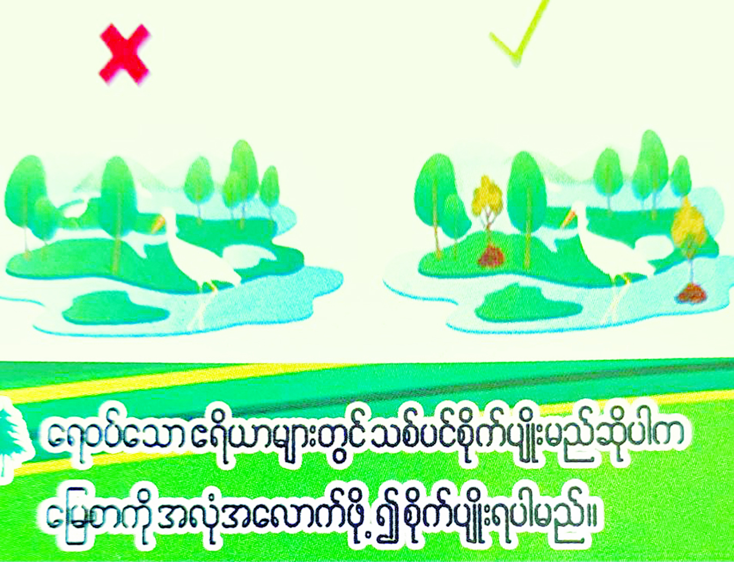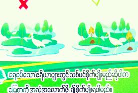 နောင်လာနောက်သား မျိုးဆက်သစ်များအား အမွေကောင်းများ ပေးနိုင်စေရေး၊ စိမ်းလန်းစိုပြည်သည့်မြေကြီးမှ ရွှေသီးစေရေးနှင့် သက်ရှိများအားလုံး အကျိုးရှိစေရေးအတွက် မိုးကာလ မြေဆီစိုခိုက် သစ်ပင်များများ စိုက်ကြပါစို့။ ။