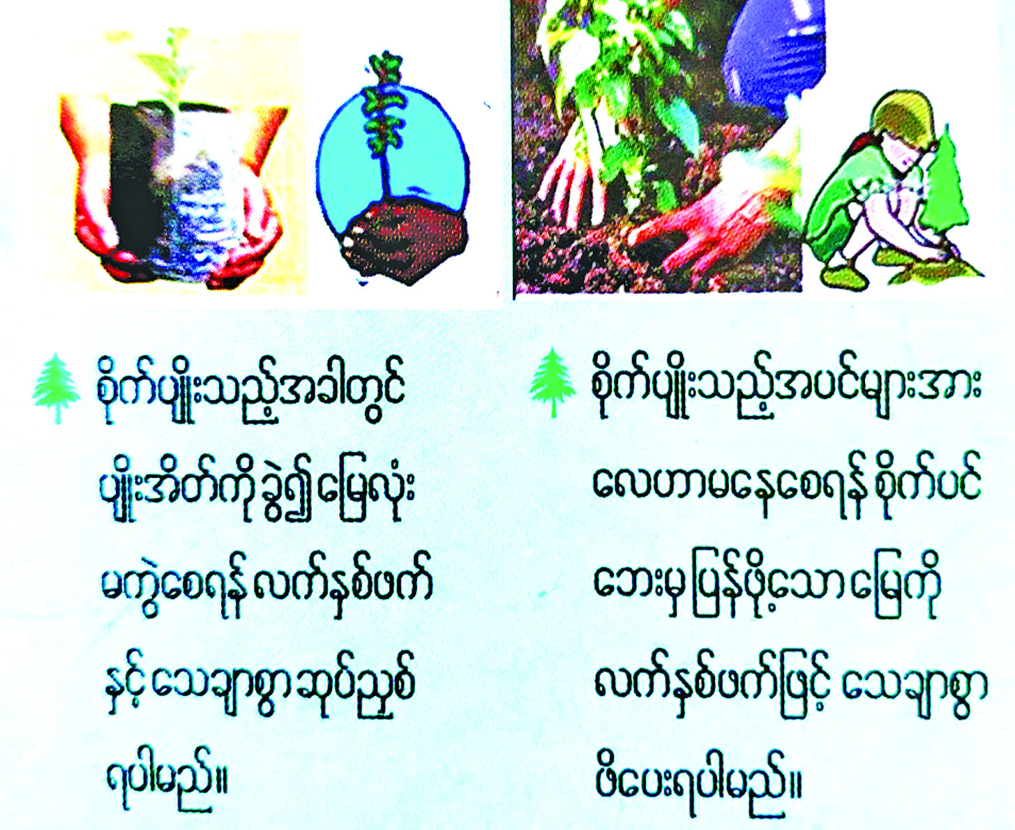 -မြဲအောင်ထိန်းသိမ်းခြင်းဖြင့် တစ်ပင်မှ တစ်တောဖြစ်အောင် စွမ်းဆောင်ရင်း သစ်ပင်များ စိုက်ကြပါစို့၊