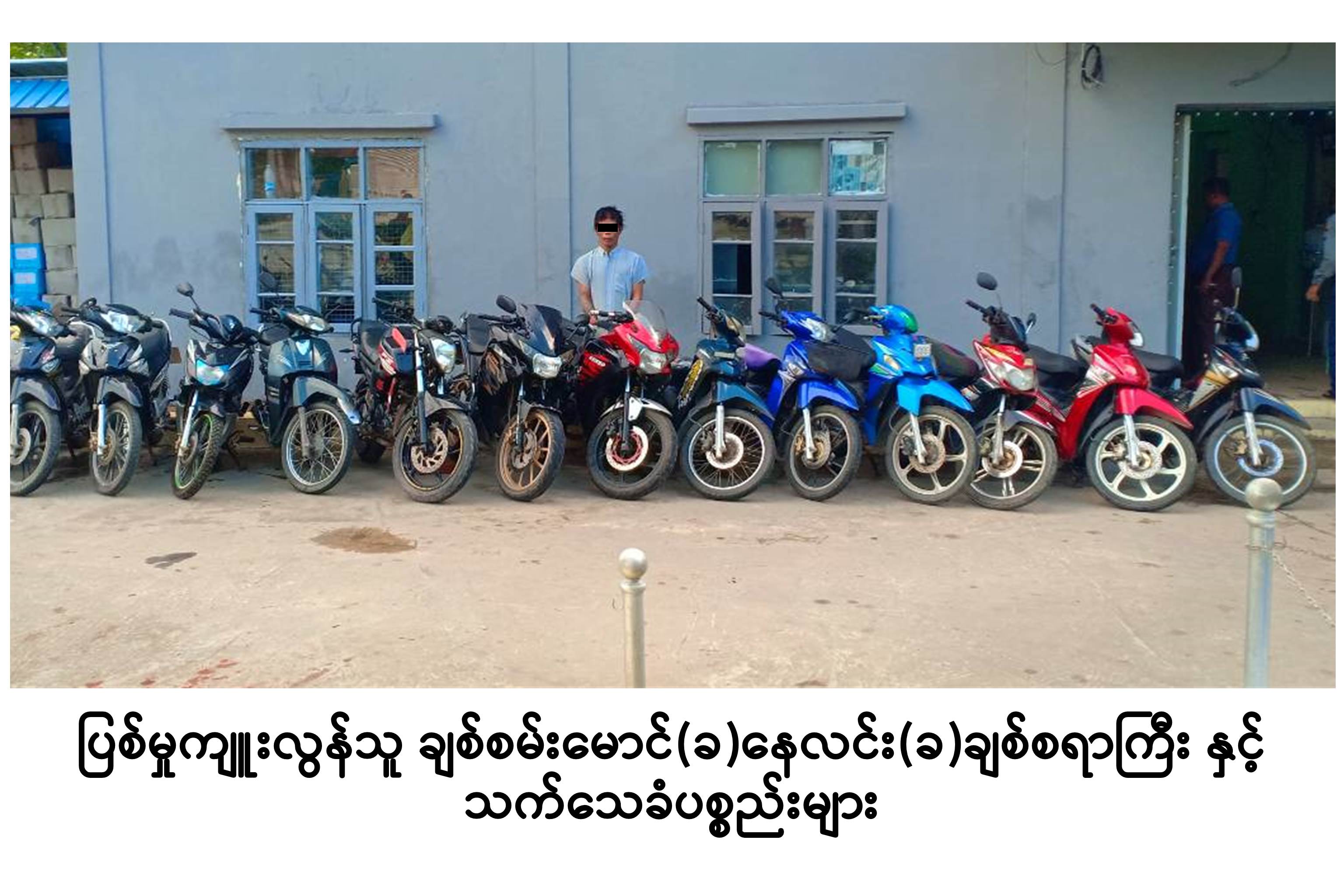အမှုမှာ ၂၈.၉.၂၀၁၉ ရက်နေ့က သောင်ကြီးနယ်မြေစခန်း(ပ)၂၀ဝ၆/၂၀၁၉၊ ရာဇသတ်ကြီးပုဒ်မ ၃၈၀ (မဆ) အမှုဖြင့် ဖမ်းဆီးထားသော ခိုးမှုတရားခံ ချစ်စမ်းမောင်(ခ)နေလင်း(ခ) ချစ်စရာကြီးအား အခြားပြစ်မှုများ ကျူးလွန်ခဲ့ခြင်း ရှိ/မရှိ အသေးစိတ်တိုက်ဆိုင်စစ်ဆေးခဲ့ရာ ၎င်းသည် ၂၀၁၉ ခုနှစ်၊ ဧပြီလမှ ဩဂုတ်လများအတွင်း အင်းစိန်မြို့နယ်၊ ဒညင်းကုန်းရပ်ကွက်၊ ဒညင်းကုန်းဈေးအနီး လမ်းမပေါ်တွင် ရပ်ထားသော YINXIANG -110 အမျိုးအစား ဆိုင်ကယ်(၁)စီး၊ တန်ဖိုးနည်းအိမ်ရာ ရှေ့တွင်ရပ်ထားသော AGUO – 125 အမျိုးအစား ဆိုင်ကယ်(၁)စီး၊ လှိုင်သာယာမြို့နယ်၊ (၆)ရပ်ကွက်နှင့် (၈)ရပ်ကွက် အတွင်းရှိ ကျန်စစ်သား လမ်းမပေါ်တွင် ရပ်ထားသော JLM – 125 အမျိုးအစား ဆိုင်ကယ်(၂)စီး နှင့် CBR အမျိုးအစား ဆိုင်ကယ်(၁)စီး၊ ရွှေလင်ဗန်းကျေးရွာ၊ ရွှေလင်ဗန်းဈေး လမ်းမပေါ်တွင်ရပ်ထားသော Dream – 110 အမျိုး အစား ဆိုင်ကယ်(၁)စီး နှင့် ZHNE CZI – 183 အမျိုးအစား ဆိုင်ကယ်(၁)စီး၊ စက်မှုဇုန်(၁)၊ ဒေါ်ဖွားယဉ် လမ်းမပေါ်တွင် ရပ်ထားသော REVO – 110 အမျိုးအစား ဆိုင်ကယ်(၁)စီး၊ (၅)ရပ်ကွက်၊ တပင်ရွှေထီးလမ်းမပေါ်တွင် ရပ်ထားသော FLYMO CZI အမျိုးအစား ဆိုင်ကယ်(၁)စီး နှင့် ရွှေညောင်ပင်လမ်းမပေါ်တွင် ရပ်ထားသော YAMAHA FZ အမျိုးအစား ဆိုင်ကယ်(၁)စီး၊ အထက(၄)ကျောင်းရှေ့လမ်းမပေါ်တွင် ရပ်ထားသော FEILING CZI အမျိုးအစား ဆိုင်ကယ်(၁)စီး၊ (၃)ရပ်ကွက်၊ သာယာကုန်းဈေးအနီး လမ်းမပေါ်တွင် ရပ်ထားသော LIFAN CZI – 125 အမျိုးအစား ဆိုင်ကယ်(၁)စီး နှင့် (၁၈)ရပ်ကွက်၊ ဗိုလ်အောင်ကျော်လမ်းမကြီး၊ အထက(၃) ကျောင်းဘေးတွင် ရပ်ထားသော KENBO CBR အမျိုးအစား ဆိုင်ကယ်(၁)စီးတို့အား ခိုးယူခဲ့ကြောင်း စစ်ဆေးပေါ်ပေါက်ခဲ့သည်။