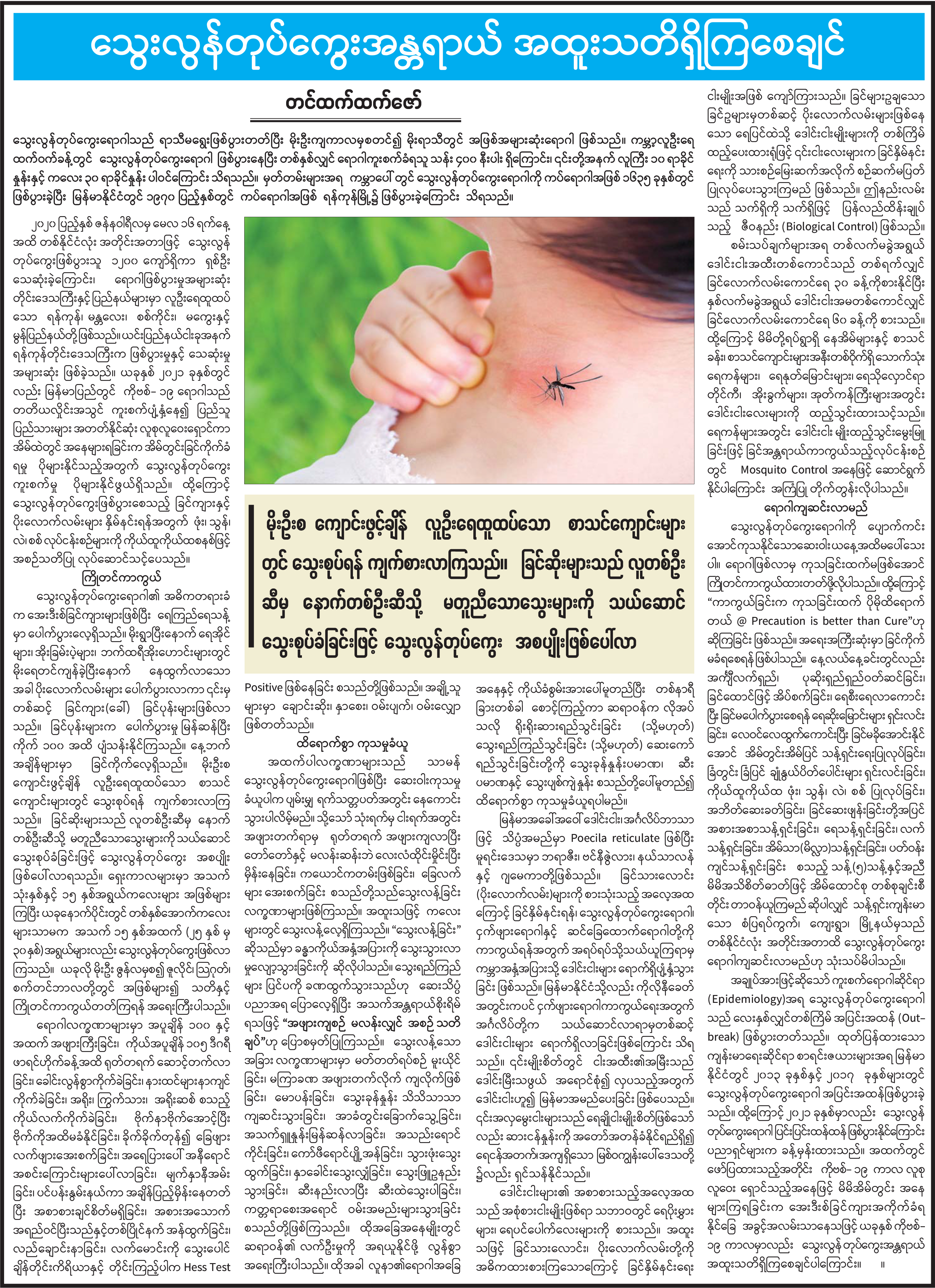 သွေးလွန်တုပ်ကွေးအန္တရာယ် အထူးသတိရှိကြစေချင်