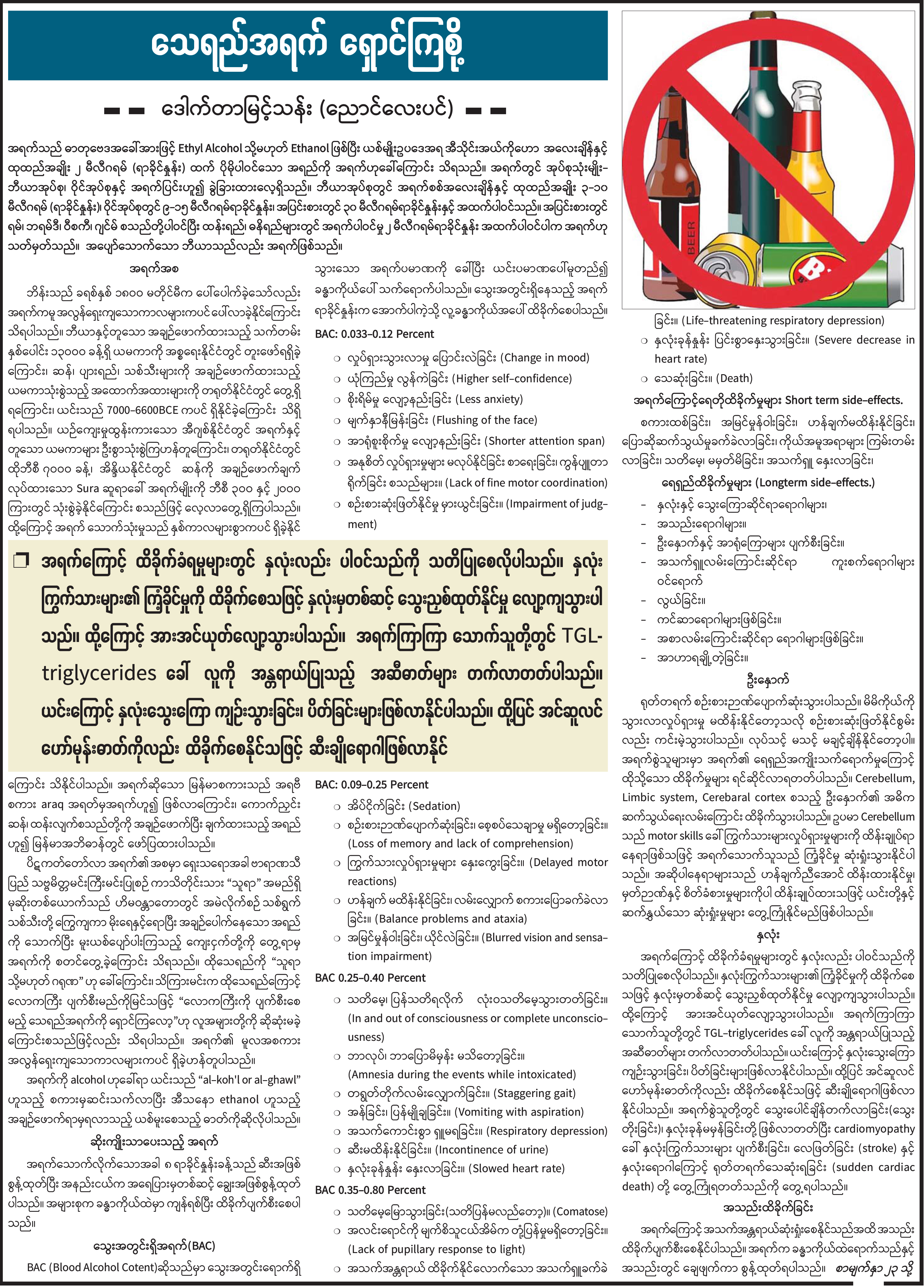 သေရည်အရက် ရှောင်ကြဉ်ကြစို့