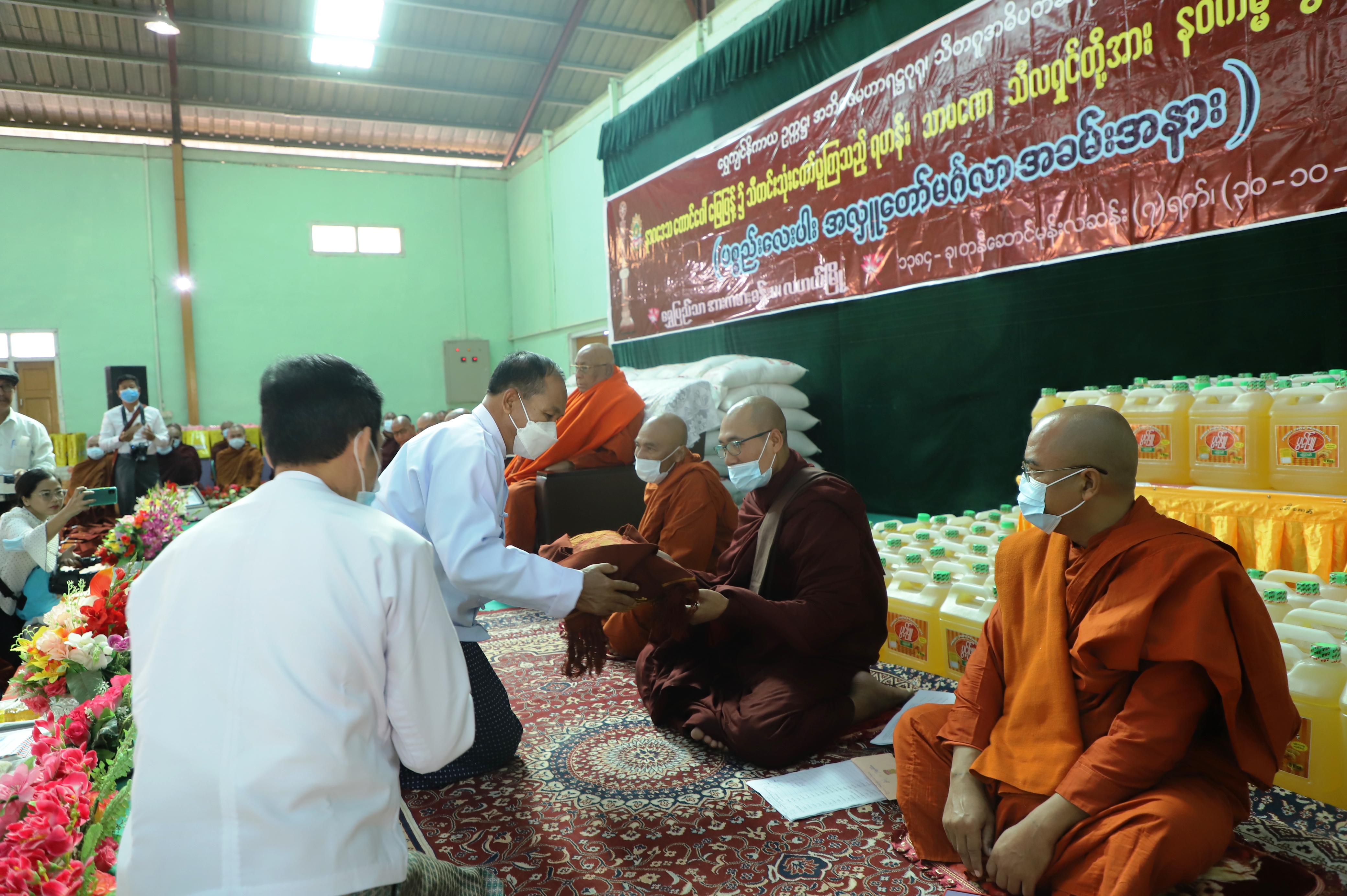 ယင်းနောက် ဆရာတော်အရှင်သူမြတ်များ ရွတ်ပွားသရဇ္ဈာယ် ချီးမြင့်တော်မူသော ပရိတ်တရားတော်များ နာယူကြည်ညိုကြပြီး သီတဂူဆရာတော်ကြီးက လဟယ်မြို့နယ် နှင့် နန်းယွန်းမြို့နယ်ရှိ ဘုန်းတော်ကြီးကျောင်းများနှင့် သီလရှင်ကျောင်းများသို့ ထောက်ပံ့လှူဒါန်းသည့် စတုပစ္စယ လှူဖွယ်ပစ္စည်းများကို ဆရာတော်ကြီးနှင့် တိုင်းဒေသကြီး ဝန်ကြီးချုပ်၊ ဒုတိယဝန်ကြီးများ၊ တာဝန်ရှိသူများက ဆရာတော်များထံ ဆက်ကပ်လှူဒါန်း ကြသည်။