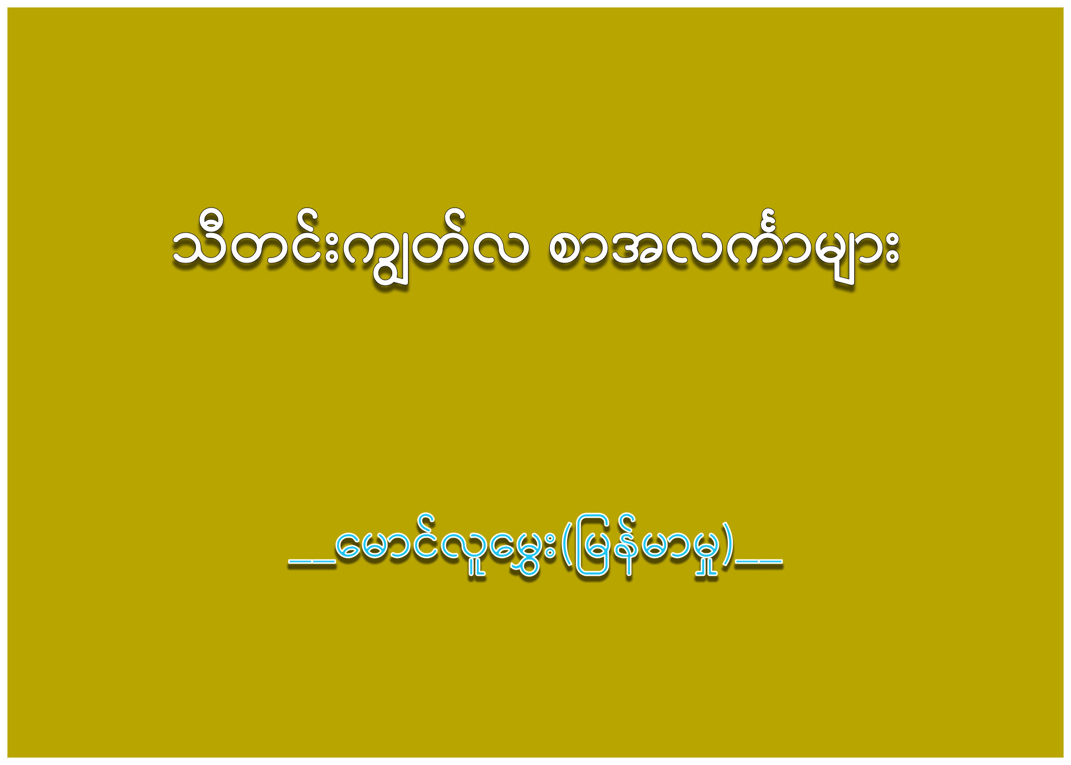 “သာစွလေ…မြောက်လေပြန်စ၊ ကောင်းကင်လနှင့်၊ အဿဝနီ၊ ပြည့်လှာညီသော်၊ ရာသီတူခွင်၊ ရေပြင်လှတင့်၊ ကြာမျိုးပွင့်၍၊ မြတ်ကျင့် ခေါင်ထွတ်၊ သီတင်းကျွတ်ကား၊ ရွှေလွှတ်တော်ပွဲ၊ တက်မြဲခင်းကျင်း၊ မြို့တွင်းမြို့ပြင်၊ ထွန်းထင်ညီးဝါ၊ မြို့လယ်မှာမူ၊ အချာဗဟို၊ မီးမြင်းမိုရ် လည်း၊ မဂ်ဖိုလ်ရှေးရှူ၊ ပူဇော်လှူ၍၊ လူတို့ထွတ်ချာ၊ စောနရာလျှင်၊ ရတနာဘုရင်၊ မကိုဋ်ဆင်လျက်၊ သဘင်ထွက်ကာ၊ စကြာချပ်ဆင့်၊ ရှစ်ဆိုင်ဖွင့်၍၊ စဉ်သင့်နေထား၊ ရာ့တစ်ပါးတို့၊ ဖလားရွှေစိုင်၊ ရွှေခိုင် မောက်မောက်၊  ထိုက်လျောက်မြတ်နိုး၊  အုပ်ထည်မျိုးနှင့်၊  ရှိခိုး လက်ဆောင်၊ မြားမြောင်ဆင်၊ မြင်း၊ မကြွင်းလိုက်ဖက်၊  ရုတ်ရက် မြှောက်ချီး၊ ထီးနှင့်တံခွန်၊ ခန့်ရန်ပူဇော်၊ အလှူတော်ကို၊ နုမော်စိတ် ထက်၊ ချရေစက်သည်၊ ဘဝဂ်မိုးထိ သန်းတည့်လေ…။ ။ ပွင့်လင်းစည် သည်၊ ရွှေပြည်ရွှေဝ နန်းတည့်လေး…”