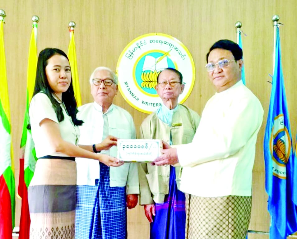ထိုသို့လှူဒါန်းရာတွင် ပြည်ထောင်စုသမ္မတမြန်မာနိုင်ငံတော် ယာယီသမ္မတ နိုင်ငံတော်လုံခြုံရေးနှင့် အေးချမ်းသာယာရေးကော်မရှင်ဥက္ကဋ္ဌ တပ်မတော်ကာကွယ်ရေးဦးစီးချုပ် ဗိုလ်ချုပ်မှူးကြီးမင်းအောင်လှိုင်နှင့် ဇနီး ဒေါ်ကြူကြူလှတို့က ငွေကျပ် ၁၄၅ သိန်းကျော်တန်ဖိုးရှိ အင်္ကျီ၊ ပုဆိုး၊ လက်ဆွဲအိတ်၊ ခြုံပဝါနှင့် ပါတိတ်လုံချည်များ၊ ဒေါက်တာခင်ခင်ရီ (ရှိုင်းဟုပ်ကုမ္ပဏီ)က အလှူငွေကျပ်သိန်း ၁၀၀၊ ပြန်ကြားရေးဝန်ကြီးဌာနနှင့် အမျိုးသားစာပေဆုရှင် တာမိုးညဲ သီဟလွင်တို့က ငွေကျပ်သိန်း ၃၀ စီ၊ ကချင်ပြည်နယ်အစိုးရအဖွဲ့က ငွေကျပ်သိန်း ၂ဝ၊ နေပြည်တော်ကောင်စီက ငွေကျပ် ၁၇၆ဝဝဝဝ၊ ဒေါက်တာတင်ထွန်းဦး-ဒေါက်တာ ခင်မိုးမိုး (စွယ်စုံမီဒီယာဂရု)က ငွေကျပ် ၁၁ သိန်း၊ မြန်မာနိုင်ငံသတင်း မီဒီယာကောင်စီ၊ Nation Light Company Limited နှင့် ဦးကိုကိုလတ် (ရွှေအိုလတ်)တို့က ငွေကျပ် ၁၀ သိန်းစီ၊ ဆရာကြီး ဦးညွန့်ဆွေ (မောင်ဆွေသက်) - ဆရာမကြီး သရက် မသက်ဆွေ၊ ဗိုလ်မှူးချုပ်အေးမြင့်ကြူ(ငြိမ်း)(ချစ်ဆွေမြင့်)-ပါမောက္ခဒေါက်တာခင်ဆွေမြင့် (ဆွေယင်းမာ-ရန်ကုန်တက္ကသိုလ်)တို့က ငွေကျပ်ငါးသိန်းစီ၊ ဓနုဖြူမြို့နယ် စာရေးဆရာအသင်းက ငွေကျပ် ၁၂ဝဝဝဝ၊ ဦးကြည်ဝင်း (ထေရအောင်)၊ ဒဂုံမြို့သစ်(မြောက်ပိုင်း)မြို့နယ်စာရေးဆရာအသင်း၊ စမ်းချောင်းမြို့နယ်စာရေးဆရာအသင်း၊ ကျောက်တန်းမြို့နယ်စာရေးဆရာအသင်းနှင့် မိုးညှင်းမြို့နယ် စာရေးဆရာအသင်းတို့က ငွေကျပ် တစ်သိန်းစီ၊ မမိုးအေး(ကိုယ်တိုင်ရေး)၊ ဒေါက်တာဗိုလ်သံမဏိ (တောင်တွင်းကြီး)နှင့် ဒဂုံမြို့နယ်စာရေးဆရာအသင်းတို့က ငွေကျပ် ငါးသောင်းစီ၊ ဦးကျော်ဇေယျထွန်း(ဇေယံ)က ငွေကျပ် နှစ်သောင်း၊ ဦးထွန်းနေလင်း(သျှင်သီရိနေ)က ငွေကျပ် ၂၅၉၂၀၀၀ တန်ဖိုးရှိ စာအုပ် ၂၈၈ အုပ် ပေးအပ်လှူဒါန်းကြရာ အသင်းဥက္ကဋ္ဌ ဦးအုန်းမောင် (မြင်းမူမောင်နိုင်မိုး)၊ ဒုတိယဥက္ကဋ္ဌ(၁) ဦးမျိုးထွန်း (မောင်စိမ်းနောင်-လယ်ဝေး)၊ အတွင်းရေးမှူး ဦးညွန့်တင်(မောင်ငြိမ်းသူ-ကြို့ပင်ကောက်)နှင့် တာဝန်ရှိသူများက လက်ခံရယူပြီး ကျေးဇူးတင်စကား ပြန်လည် ပြောကြားသည်။