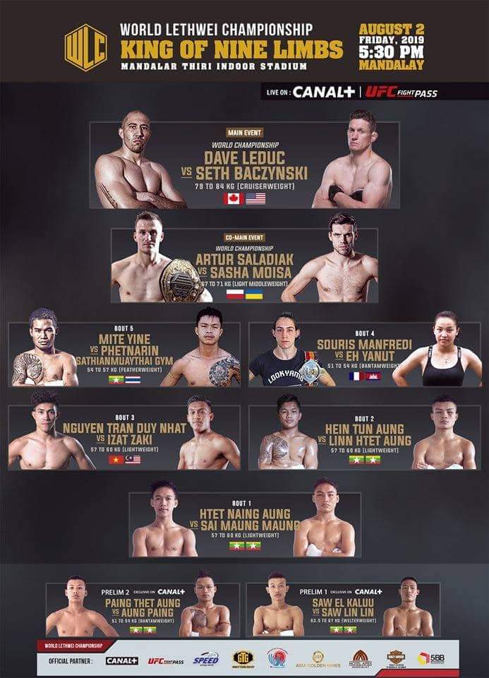မြန်မာလက်ခမောင်း ကုမ္ပဏီမှ ကျင်းပပြုလုပ်သည့် (WLC-9: King Of Nine Limbs WORLD LETHWEI CHAMPIONSHIP KING OF NINE LIMBS) အမည်ရကမ္ဘာ့လက်ဝှေ့ချန်ပီယံ မြန်မာ့လက်ဝှေ့ချန်ပီယံပြိုင်ပွဲကြီး (သက်ကိုးသက်ဘုရင်) အမည်ရ မြန်မာ့ရိုးရာလက်ဝှေ့ပြိုင်ပွဲကြီးကို မန္တလေးမြို့ ချမ်းမြသာစည်မြို့နယ် မန္တလာသီရိ လက်ဝှေ့အားကစားရုံ(Mandalar Thiri Indoor Stadiun) တွင် သြဂုတ်လ ၂ ရက် ညနေ ၅ နာရီခွဲ တွင် ကျင်းပမည်ဖြစ်သည်။