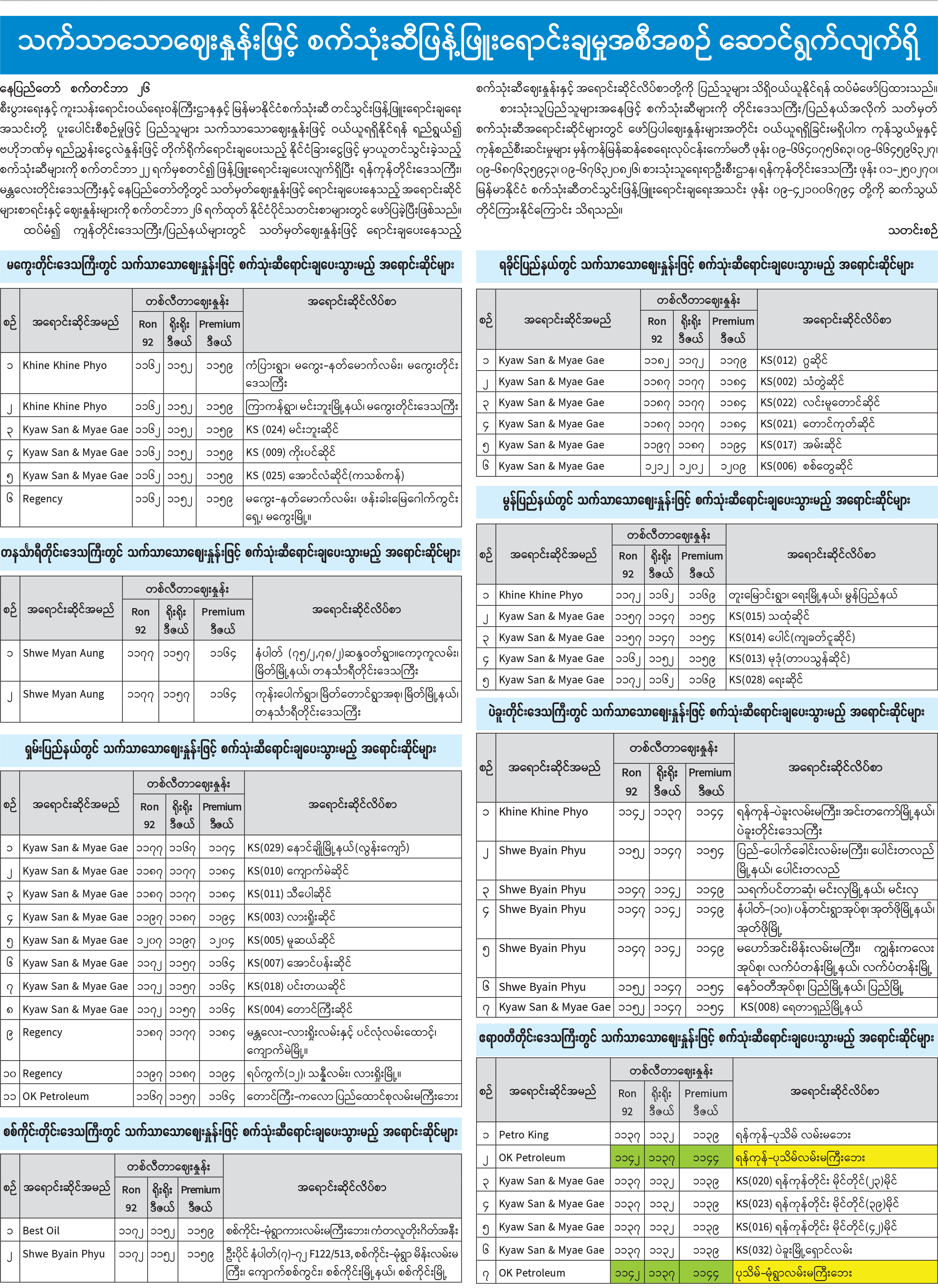 သက်သာသောဈေးနှုန်းဖြင့် စက်သုံးဆီဖြန့်ဖြူးရောင်းချမှုအစီအစဉ် ဆောင်ရွက်လျက်ရှိ