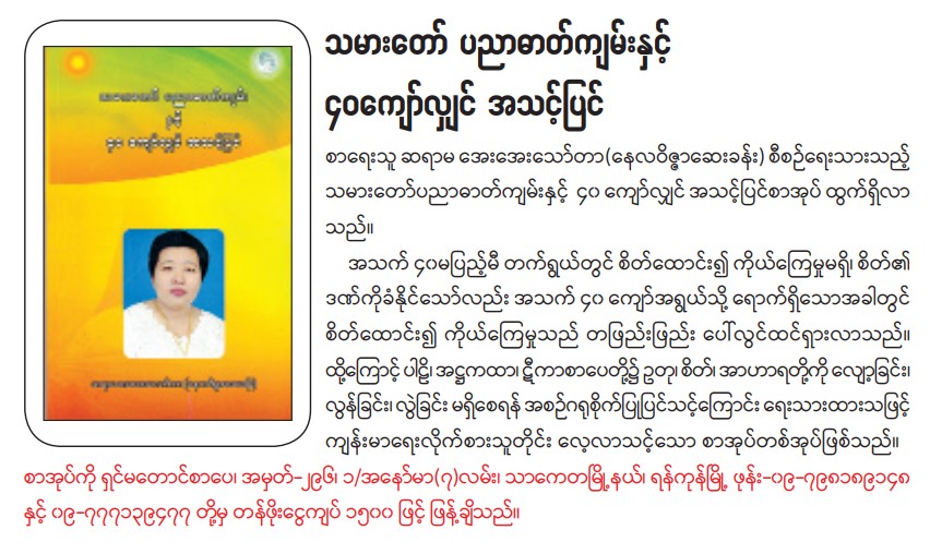 သမားတော်ပညာ ဓာတ်ကျမ်းနှင့် ၄၀ ကျော်လျှင် အသင့်ပြင်စာအုပ်ထွက်ရှိ