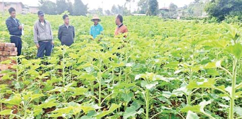 ဓနုကိုယ်ပိုင်အုပ်ချုပ်ခွင့်ရဒေသ ပင်းတယမြို့နယ် အင်းပလက်ကျေးရွာ အင်းပလက် စိုက်ပျိုးရေးနှင့် အထွေထွေသမဝါယမအသင်း၊ တမဲကျေးရွာ နေရောင်ဦးလယ်ယာနှင့် အထွေထွေသမဝါယမအသင်း၊ ပွေးလှကျေးရွာ ပွင့်လန်းစိုက်ပျိုးရေးနှင့် အထွေထွေသမဝါယမအသင်းနှင့် ကျုံးကျေးရွာ ရောင်ခြည်ဦးစိုက်ပျိုးရေးနှင့် အထွေထွေသမဝါယမအသင်းများ၏ သမဝါယမအသင်းသားပိုင် လယ်ယာမြေများတွင် ရေဆင်း(၁) စပ်မျိုးဆီနေကြာစိုက်ပျိုးထားရှိမှုများကို ပြည်နယ် သမဝါယမဦးစီးဌာန ညွှန်ကြားရေးမှူးဦးကျော်မိုးတင့်နှင့် တာဝန်ရှိသူများက ကွင်းဆင်းကြည့်ရှု၍ သီးနှံအထွက်တိုးစေရေးဆောင်ရွက်ရန်နှင့် လေလွင့်ဆုံးရှုံးမှုနည်းပါးစေရေး အလေးထားဆောင်ရွက်ကြရန် မှာကြားခဲ့သည်။ ဆက်လက်၍ ညောင်ရွှေမြို့နယ် ရွှေခေါင်တိုင် လယ်ယာနှင့်အထွေထွေသမဝါယမအသင်းသားပိုင် နေကြာစိုက်ခင်းများကို ကြည့်ရှုခဲ့ကြောင်း သိရသည်။